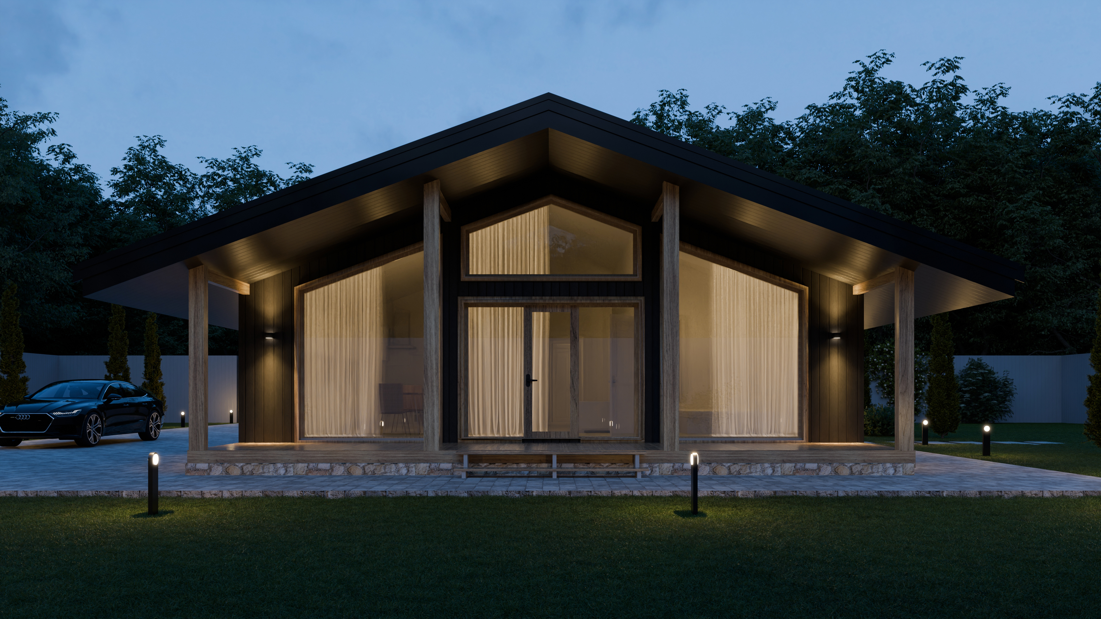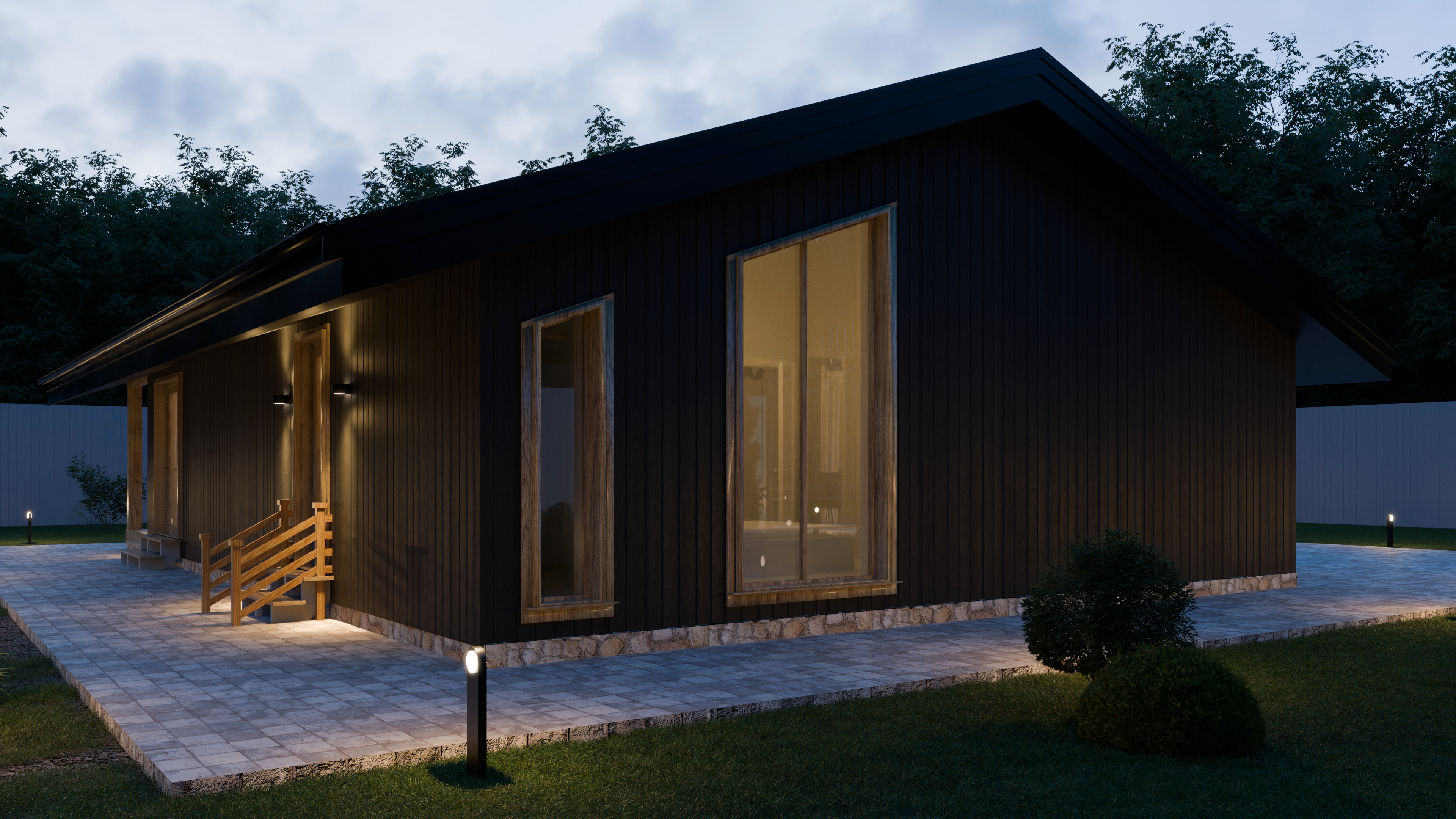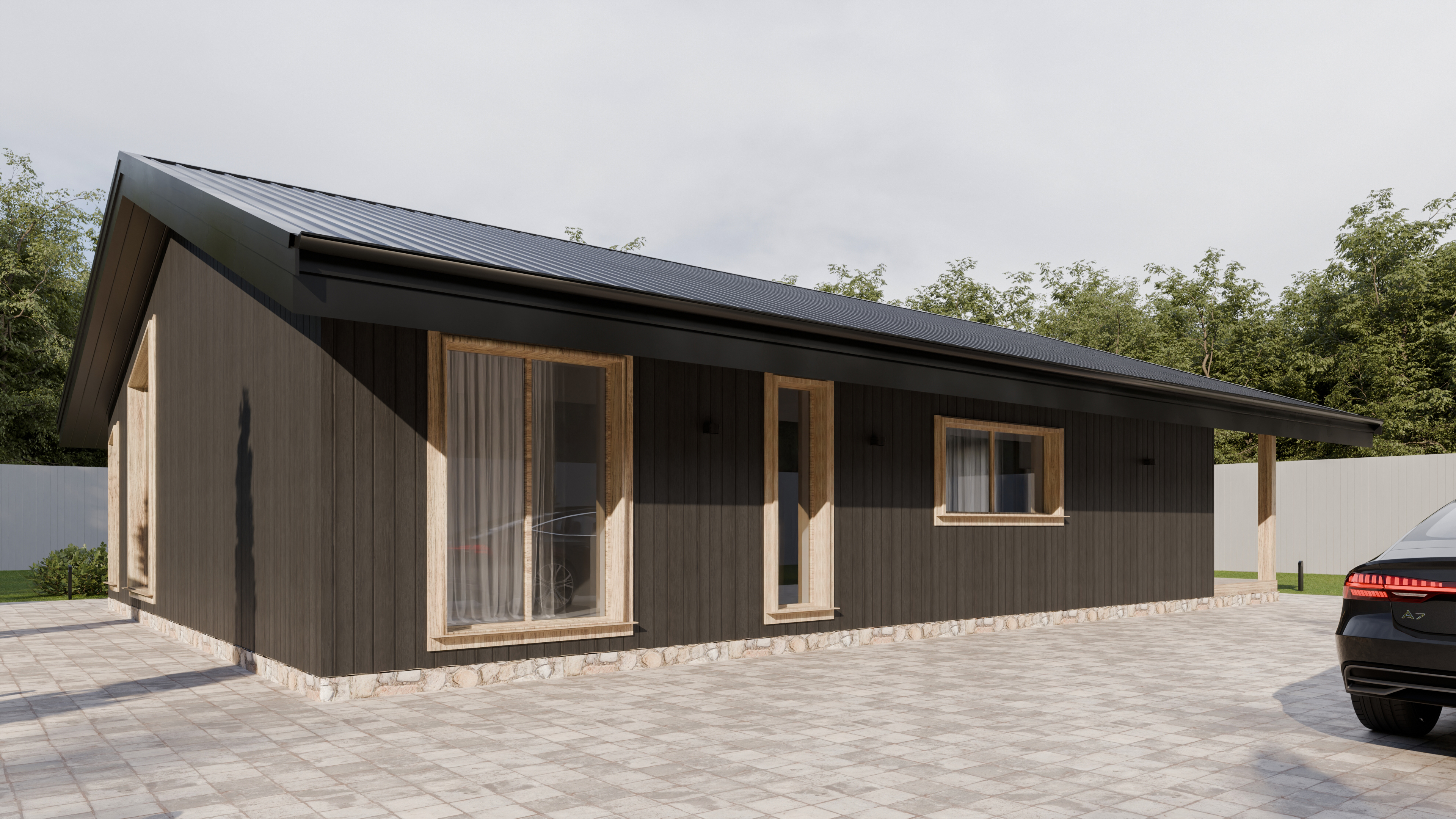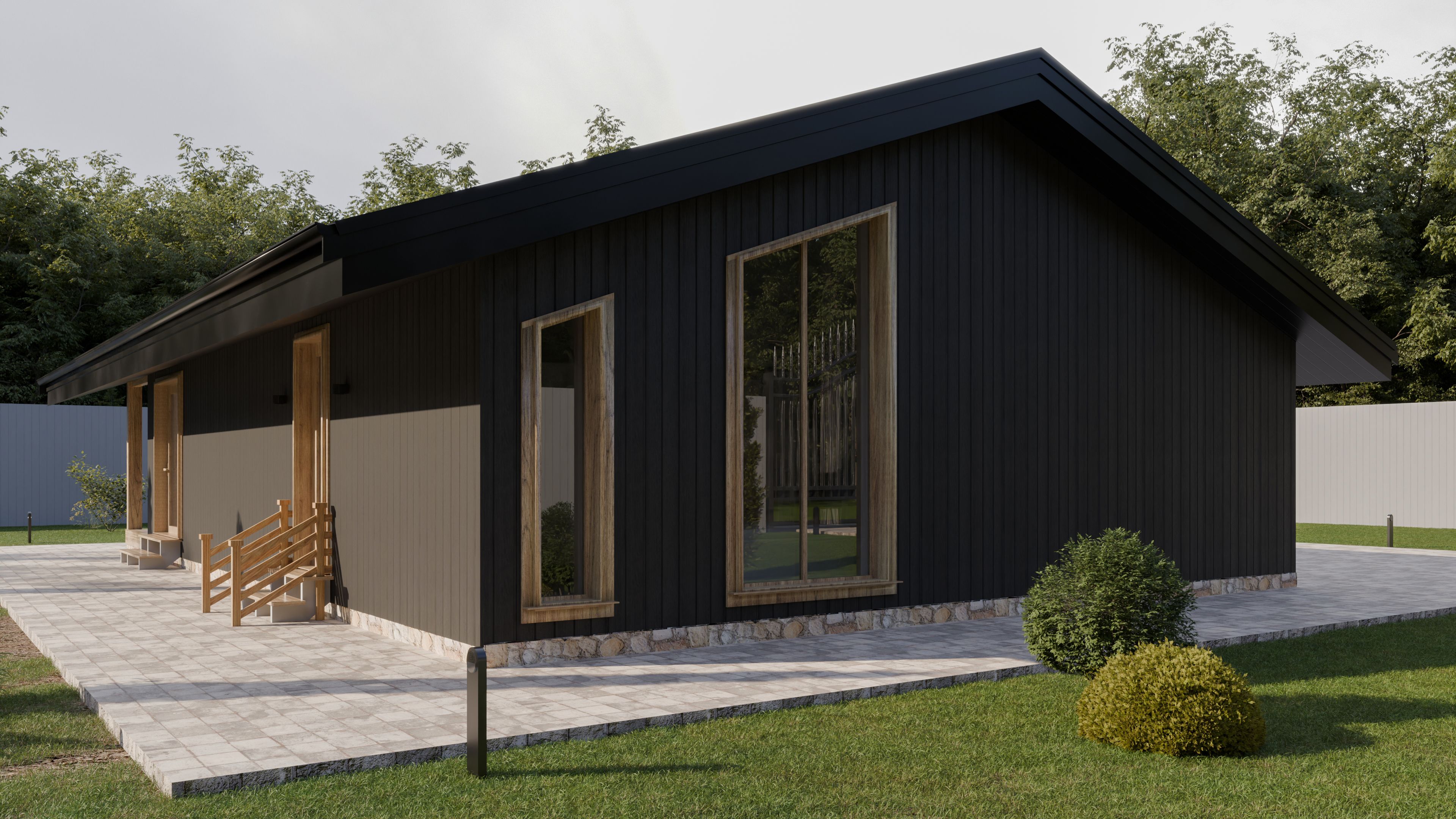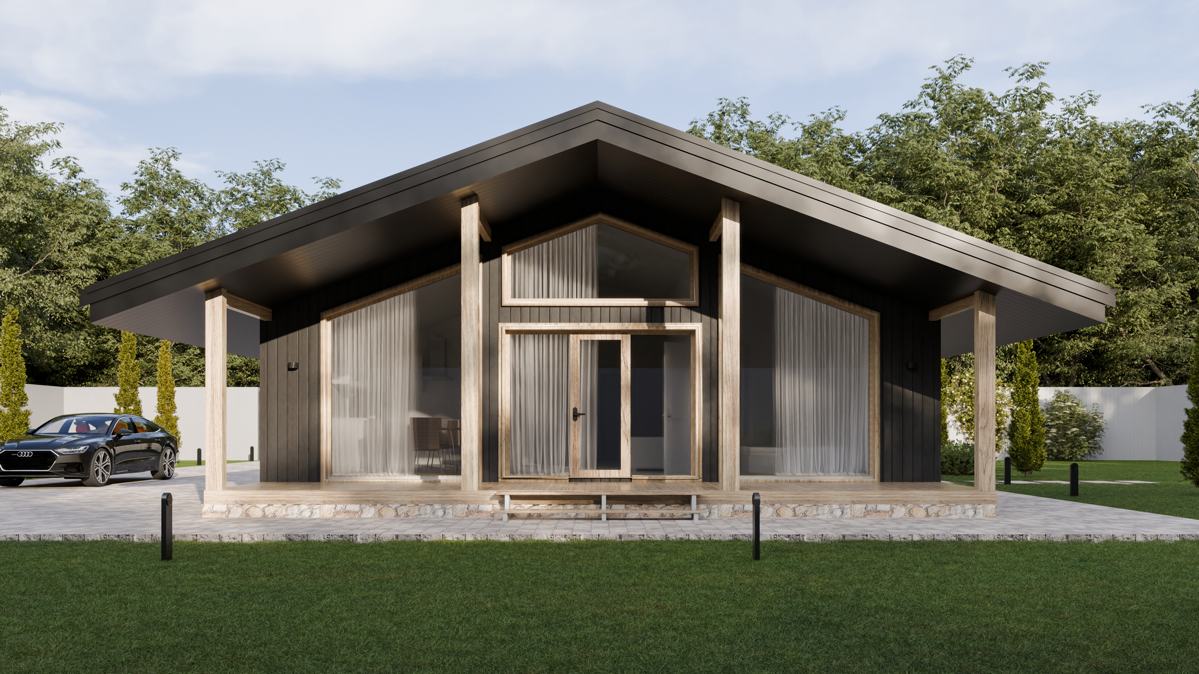 - Панорамные окна и входная дверь