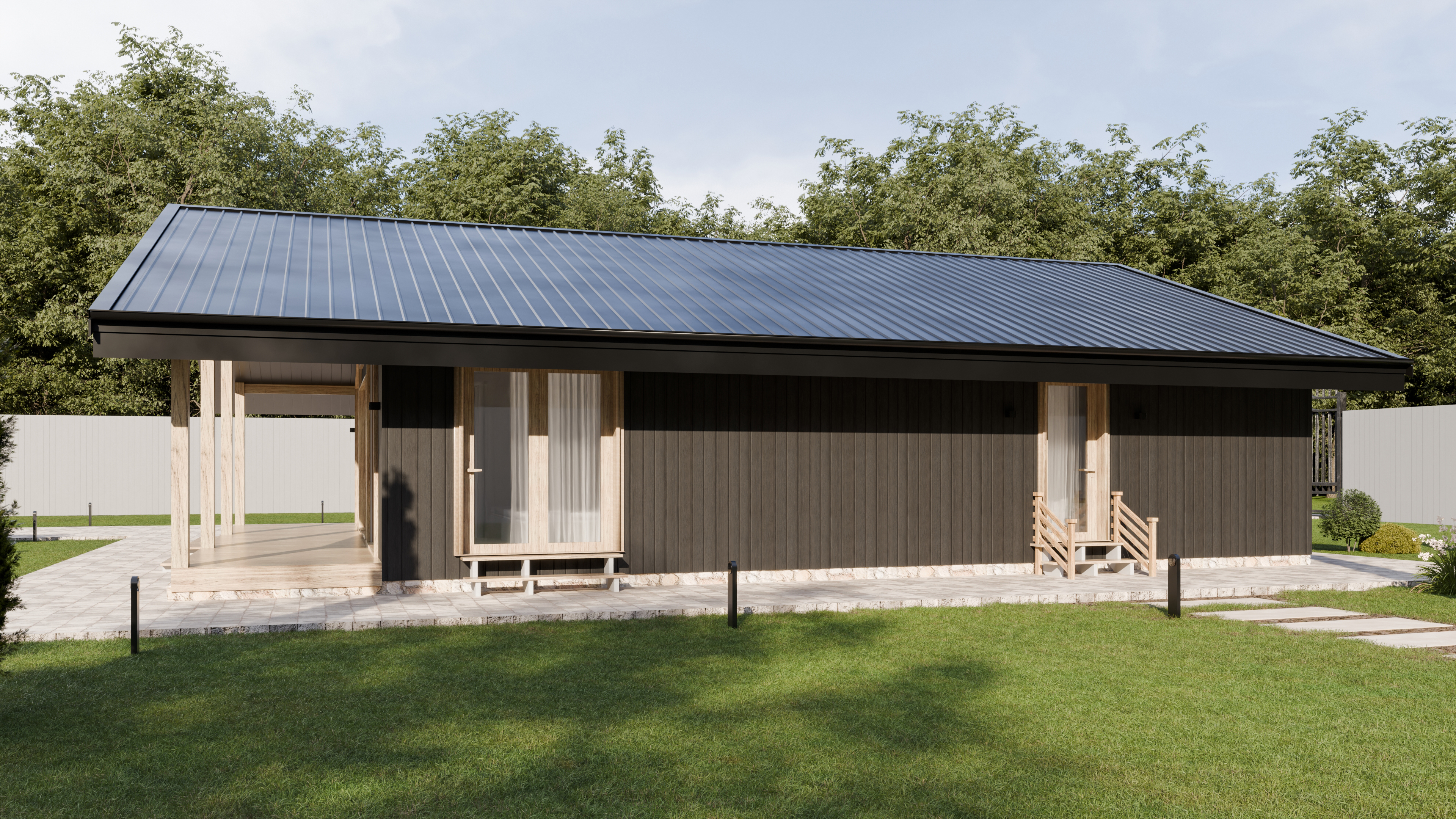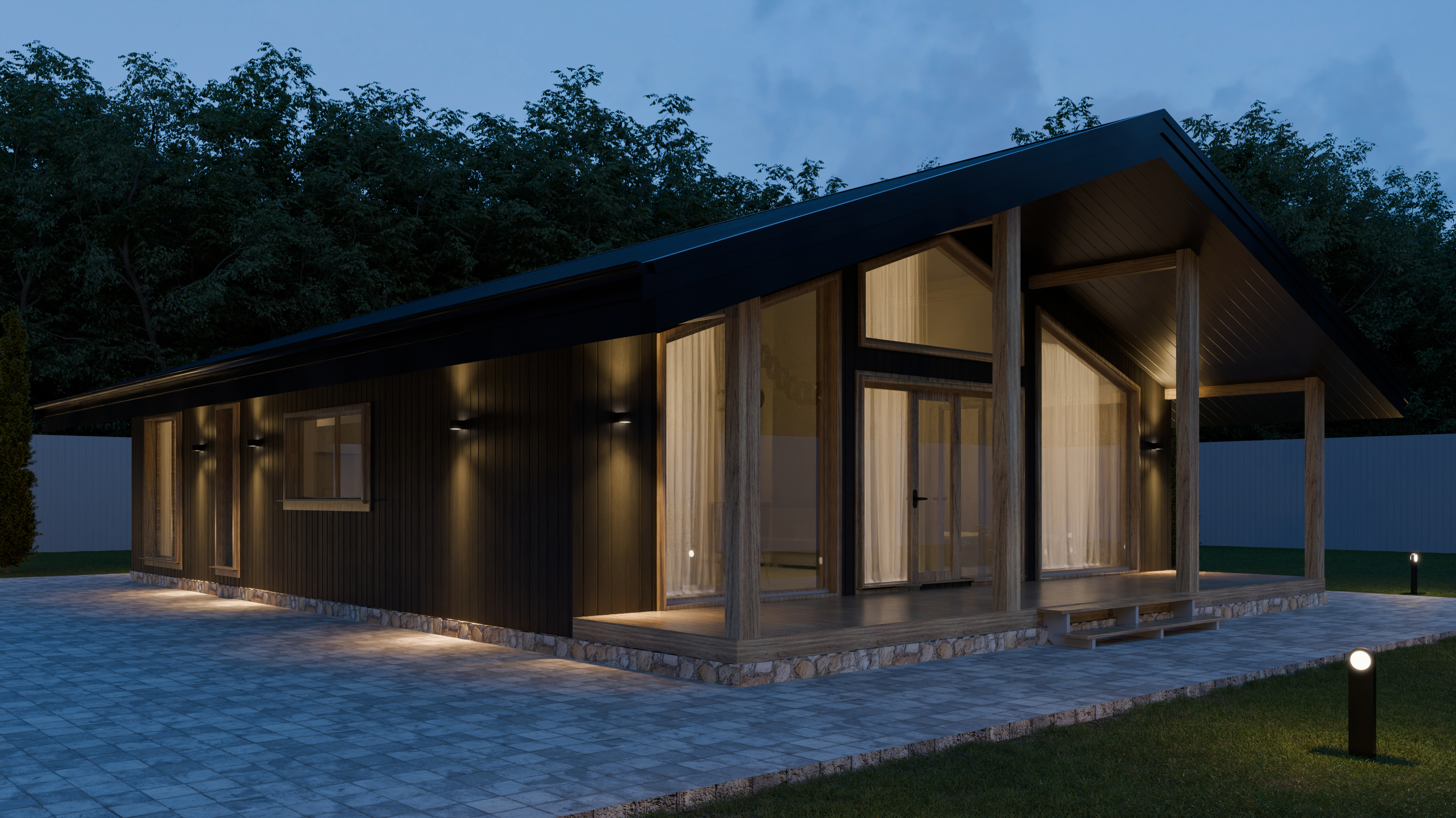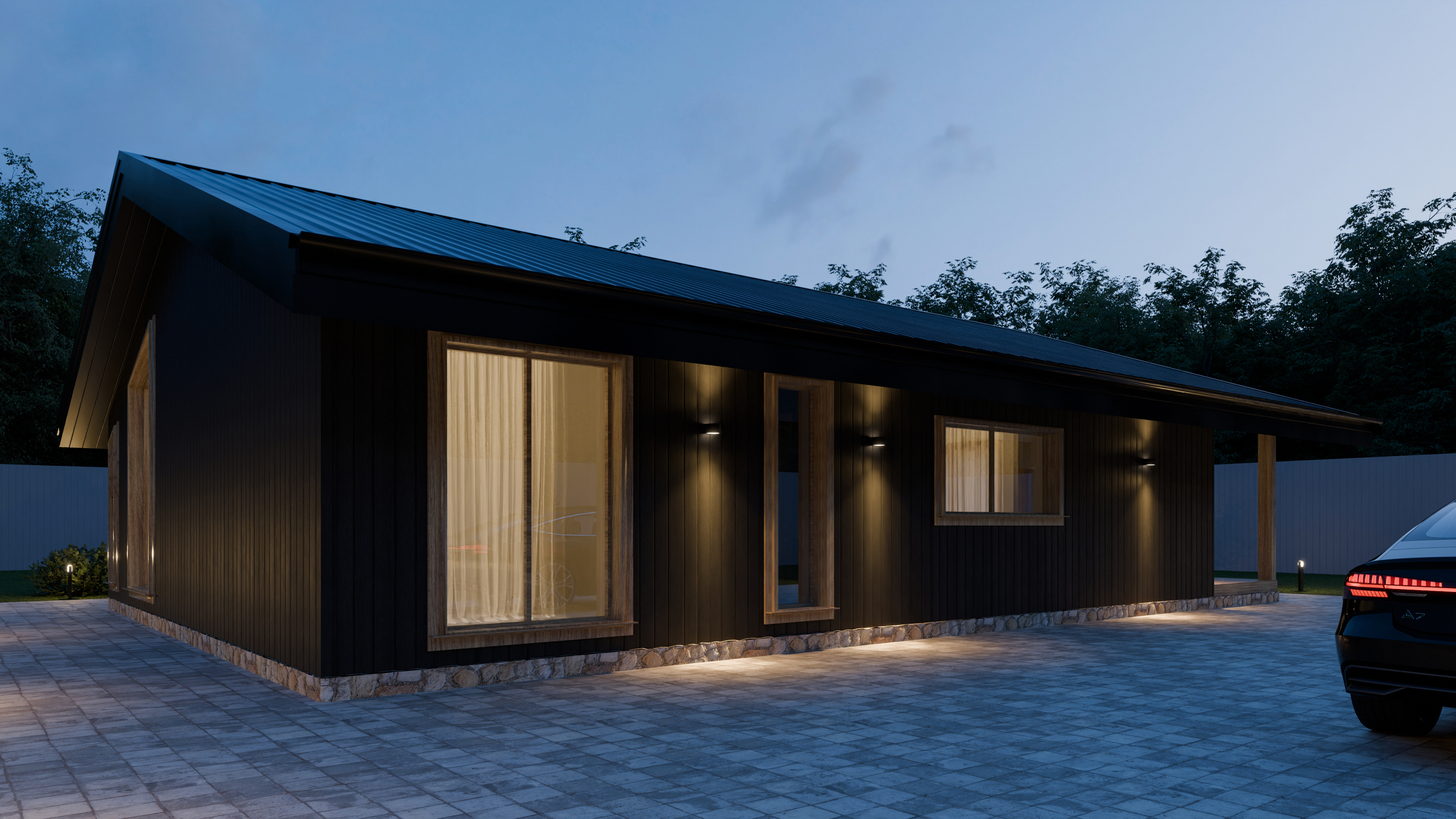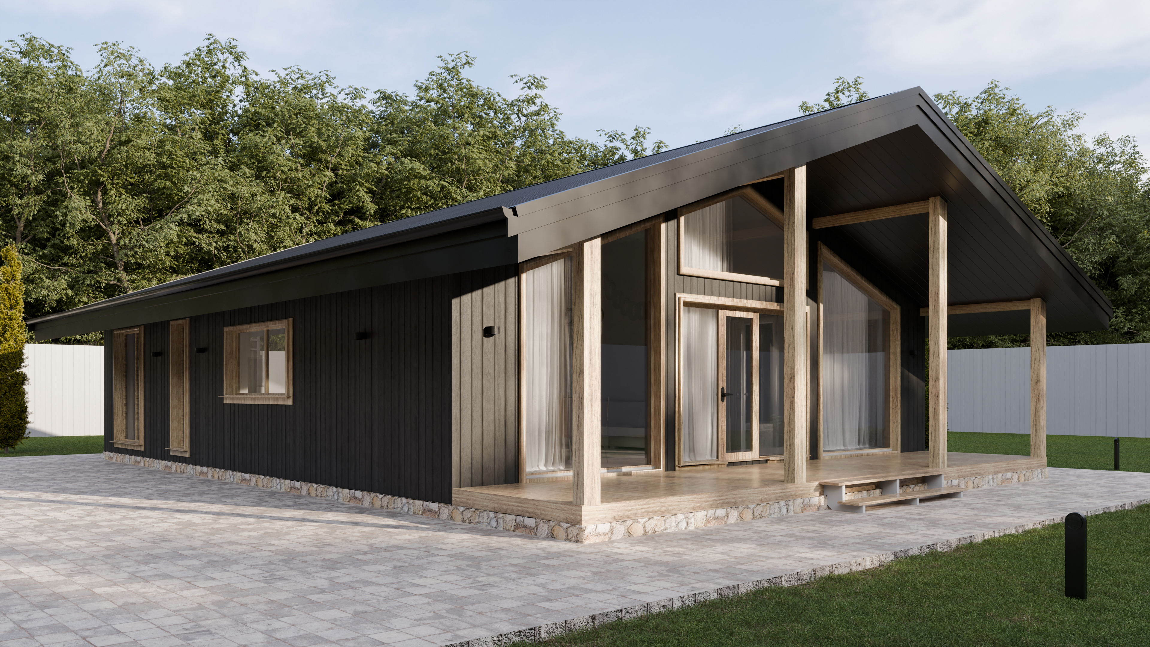 - Панорамные окна и входная дверь
