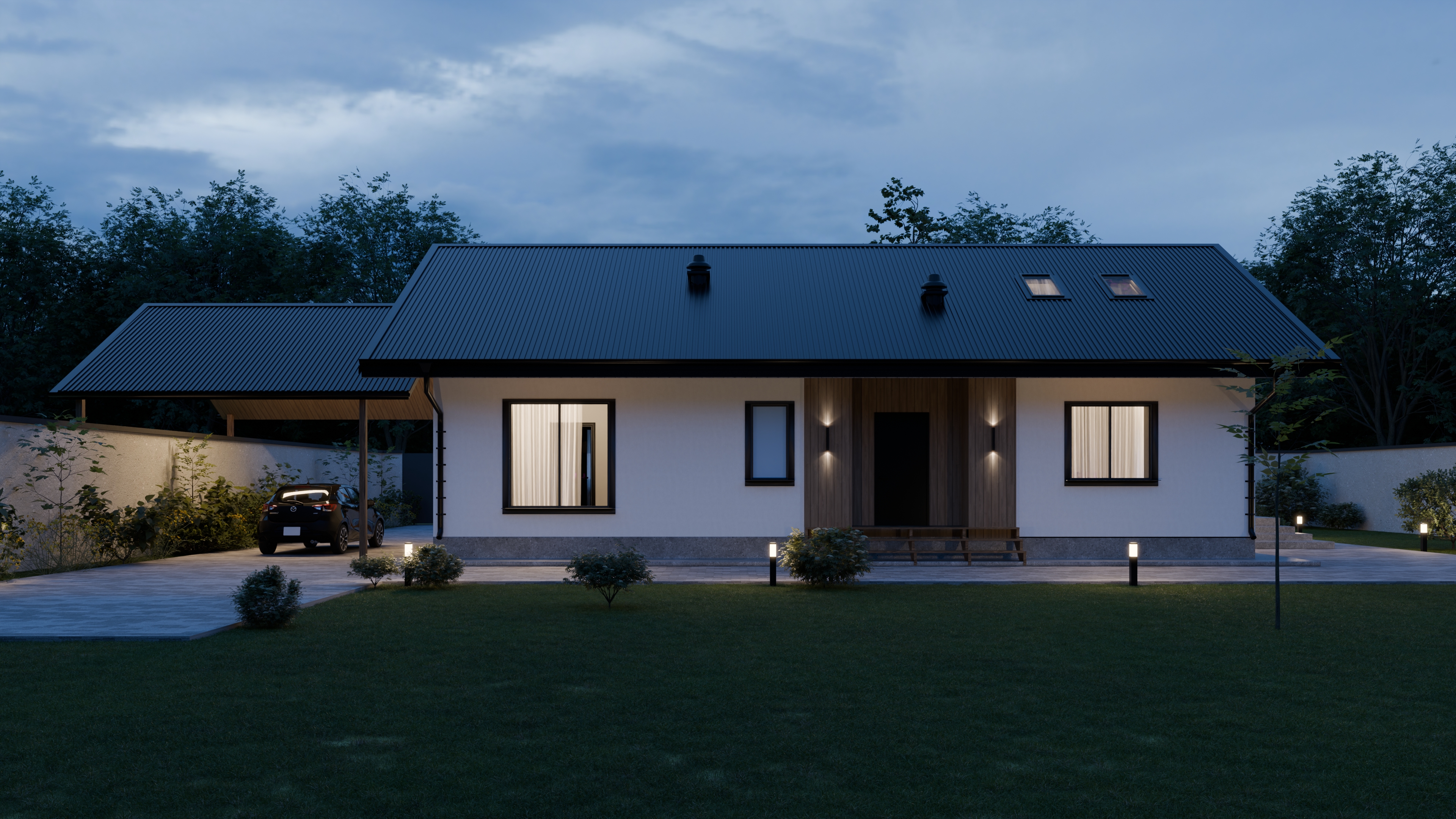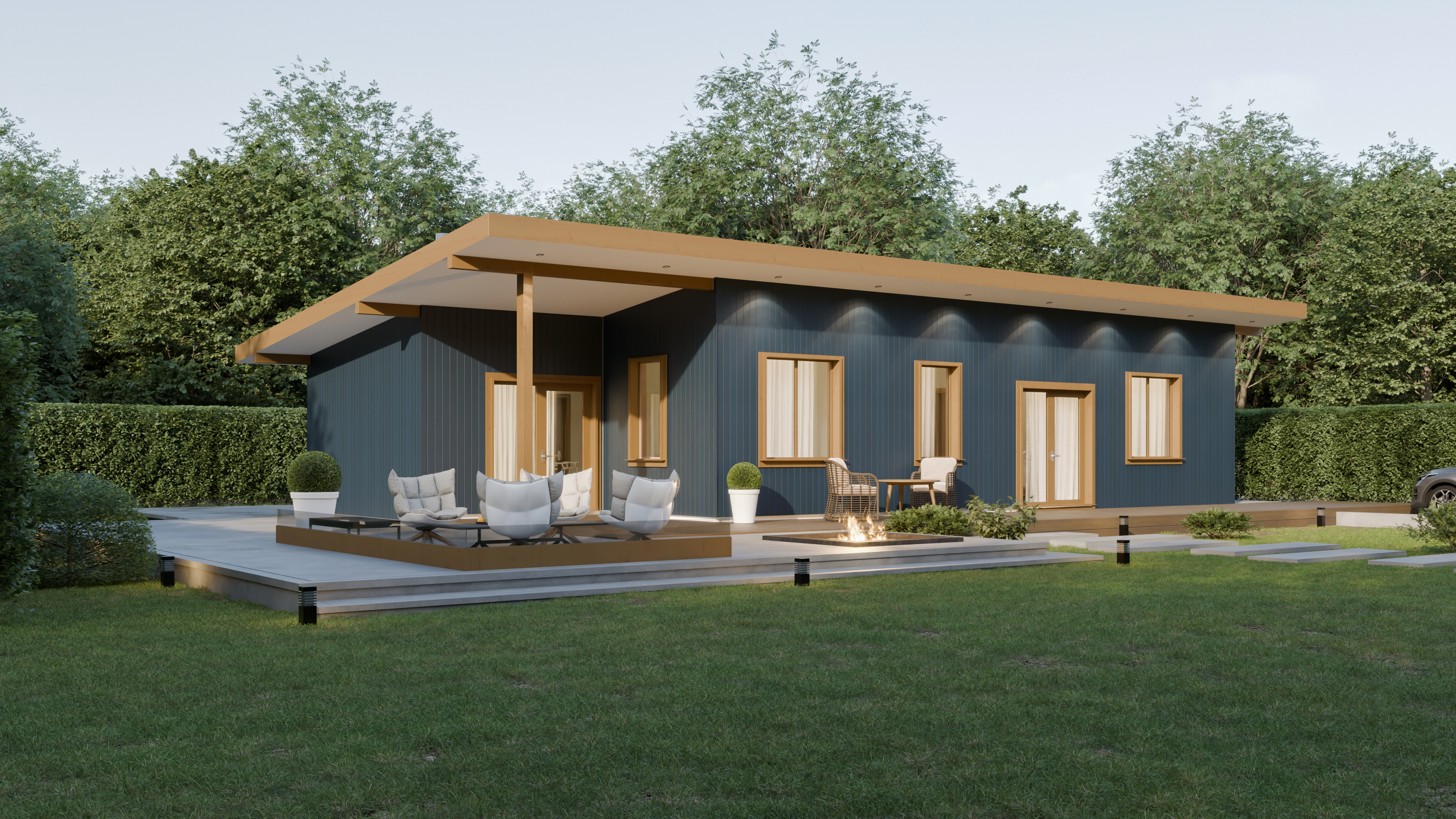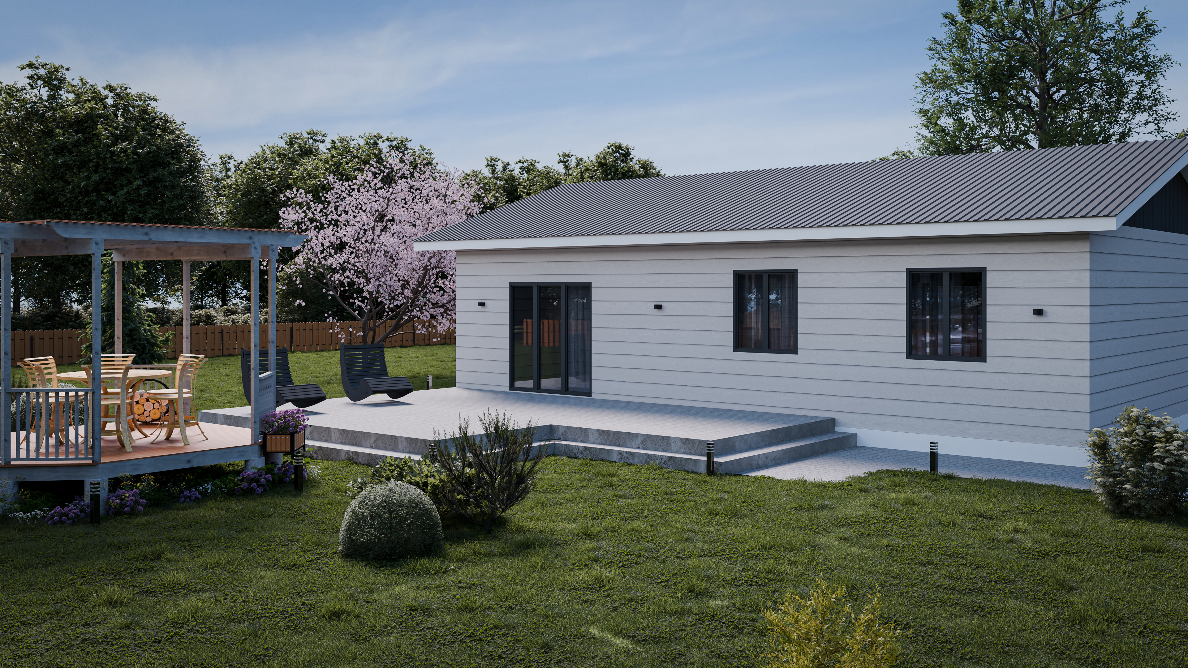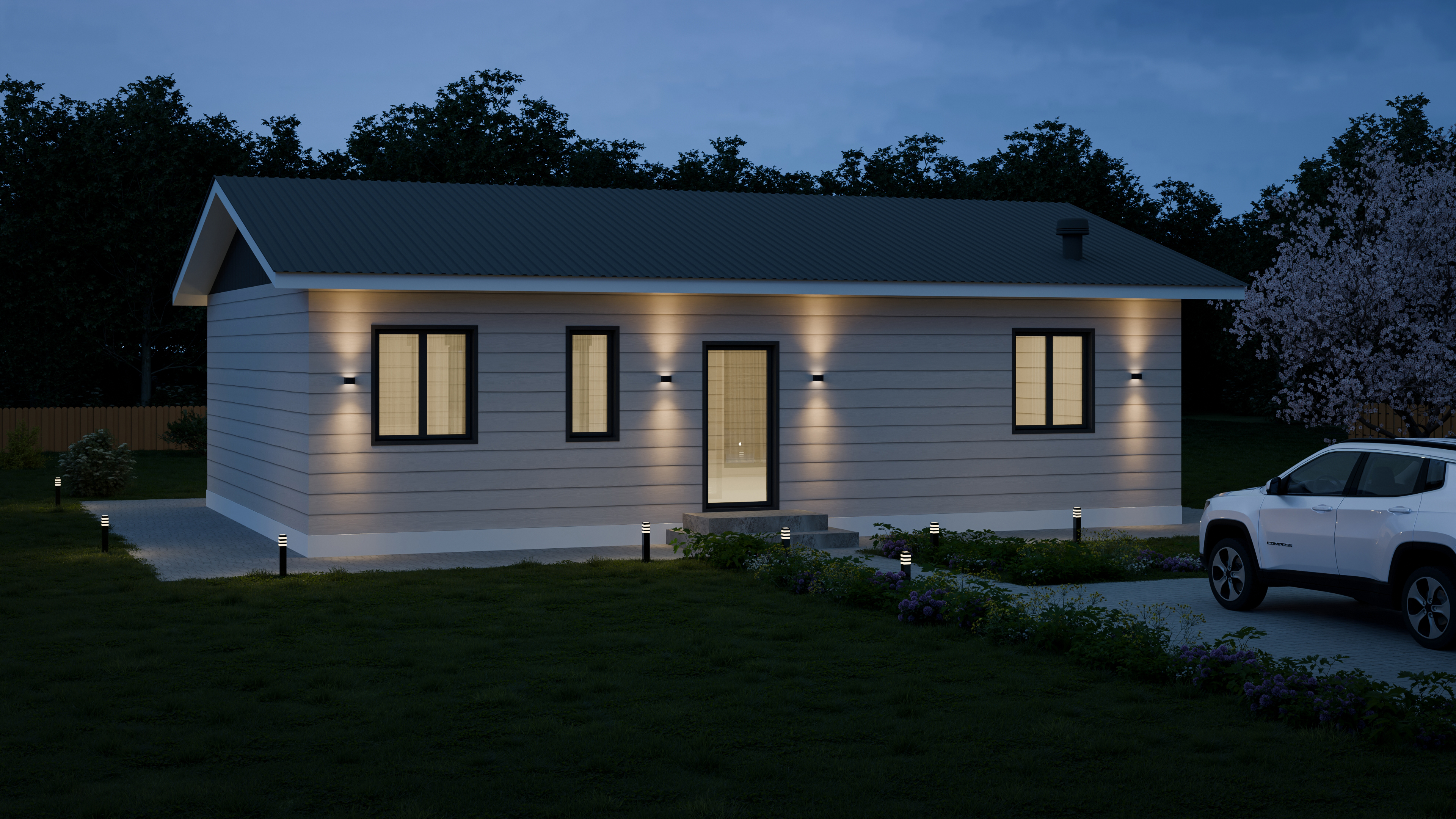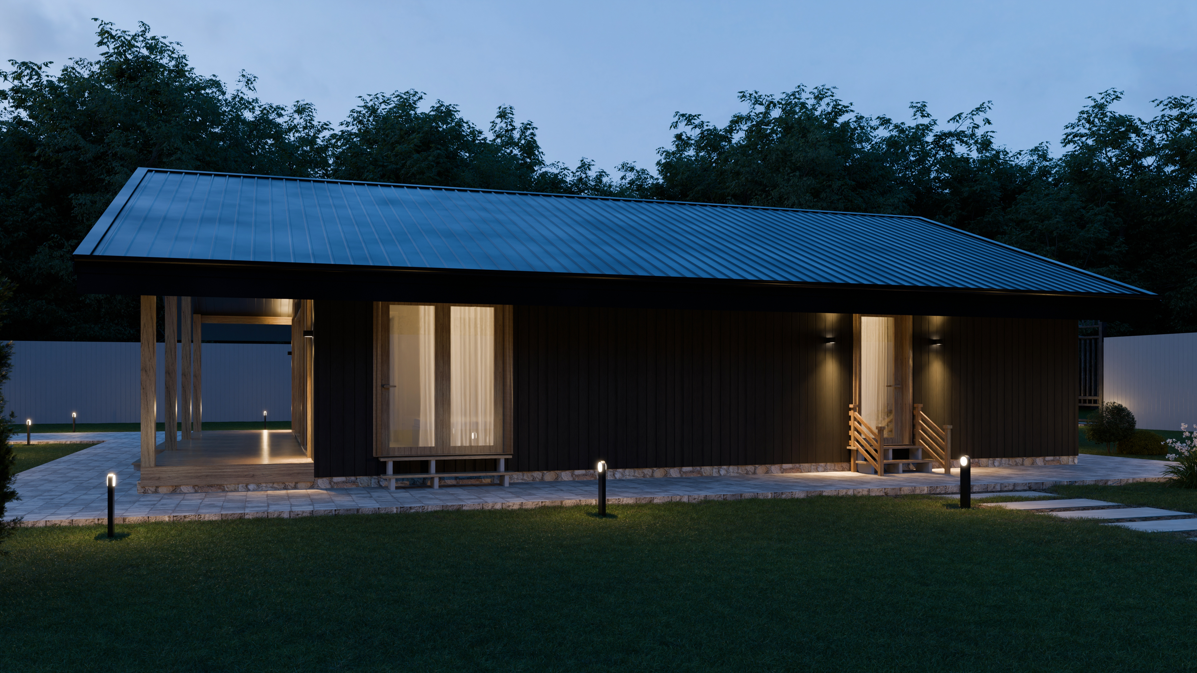 - Панорамные окна и входная дверь
