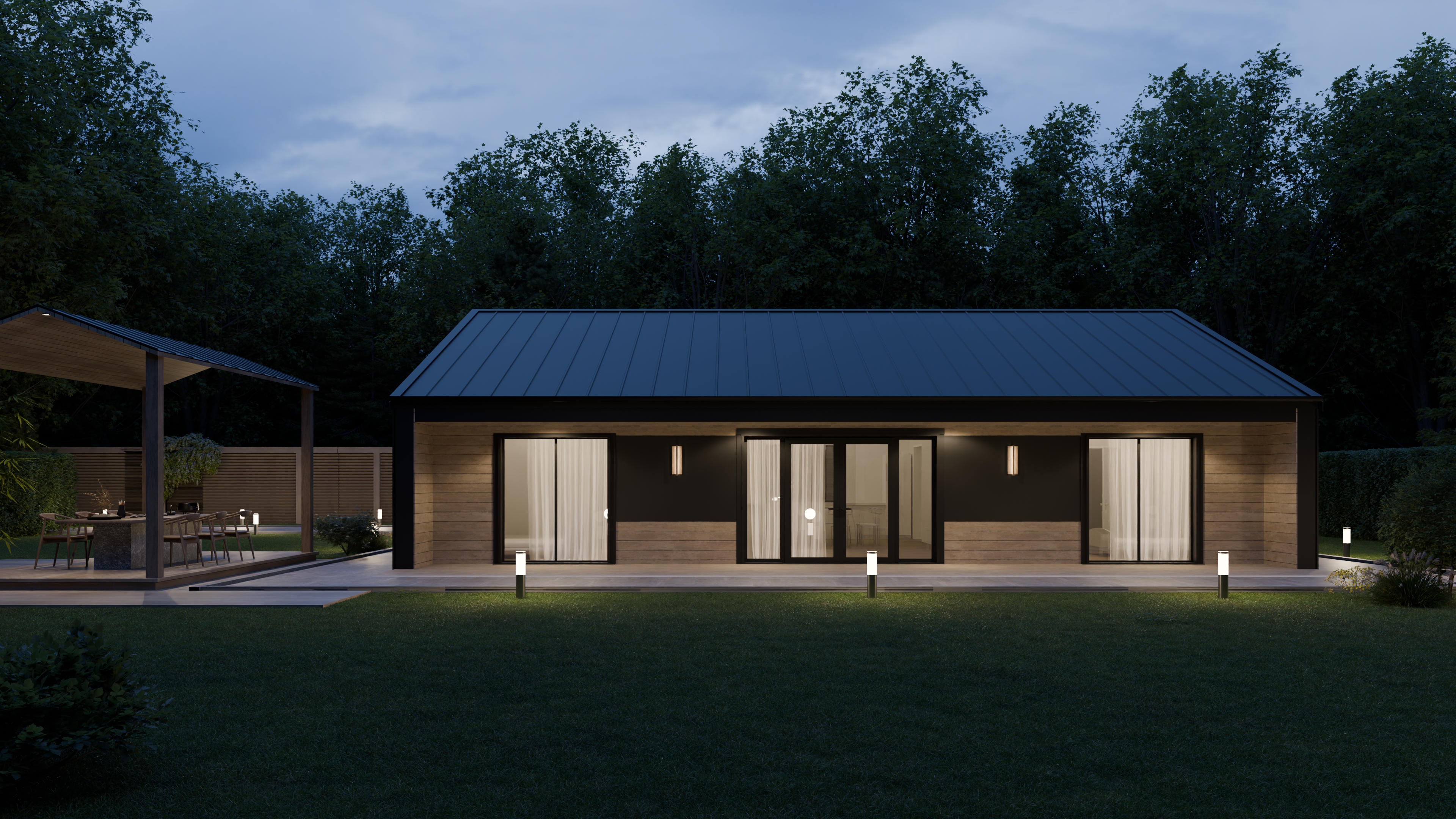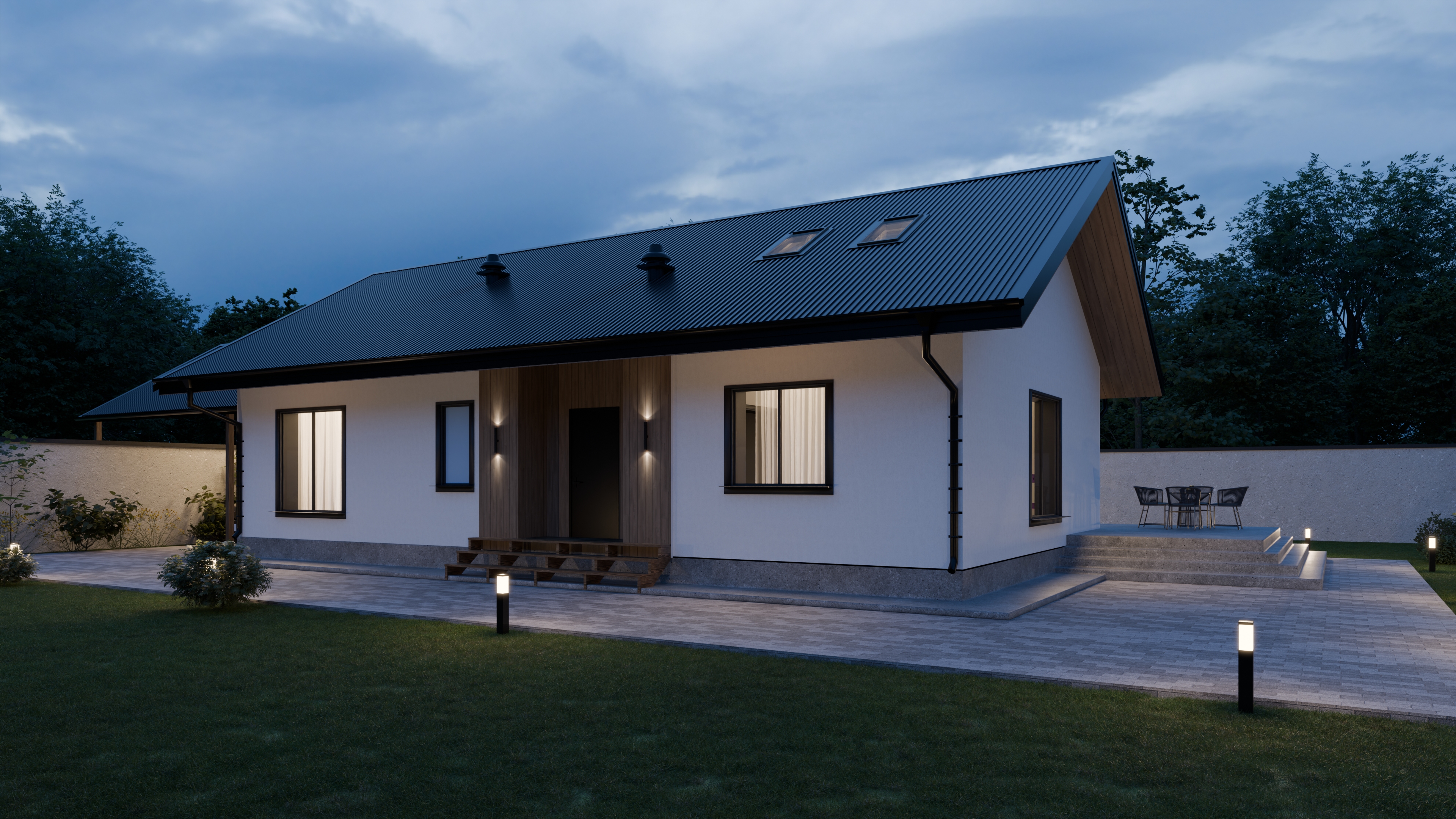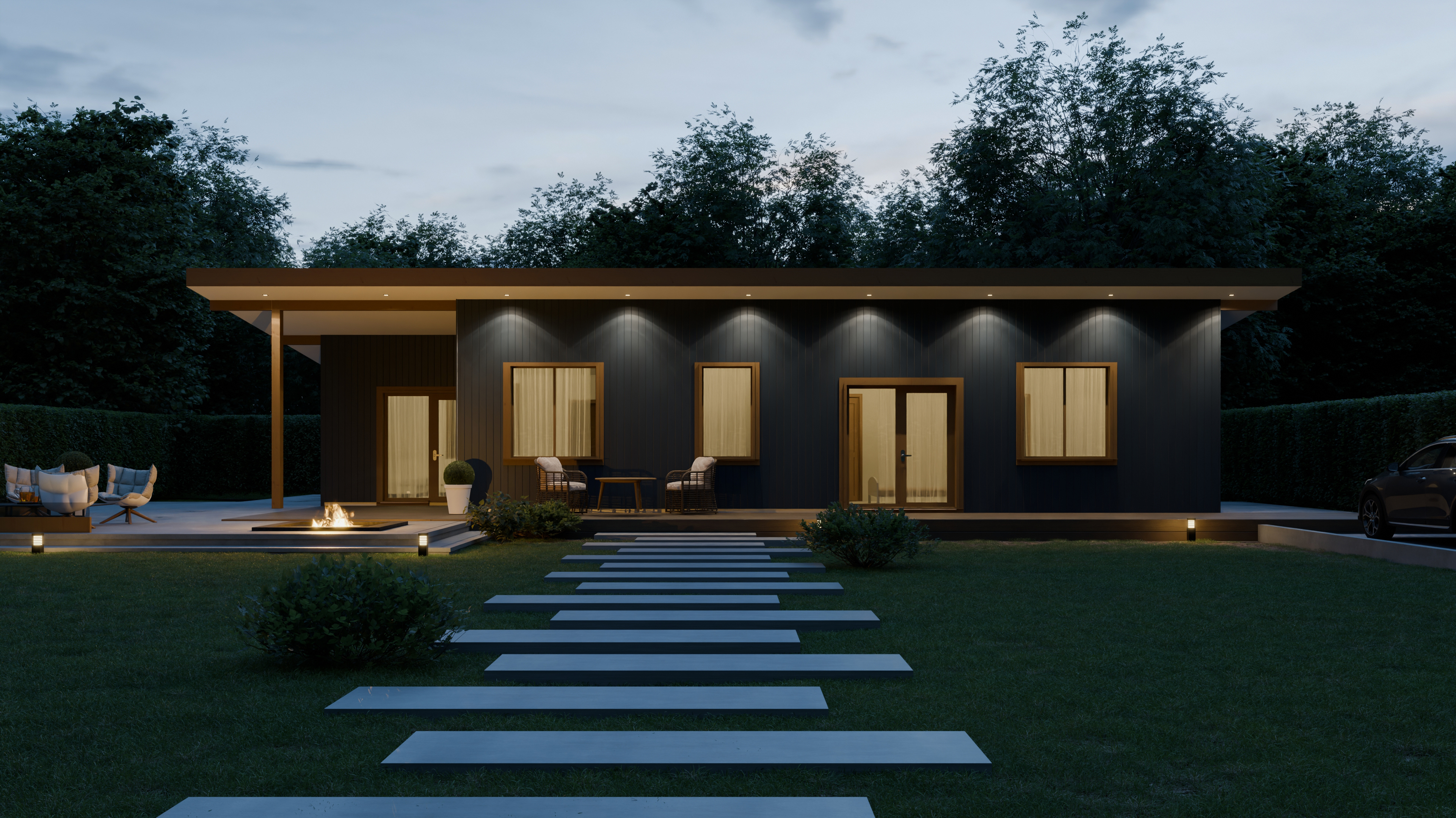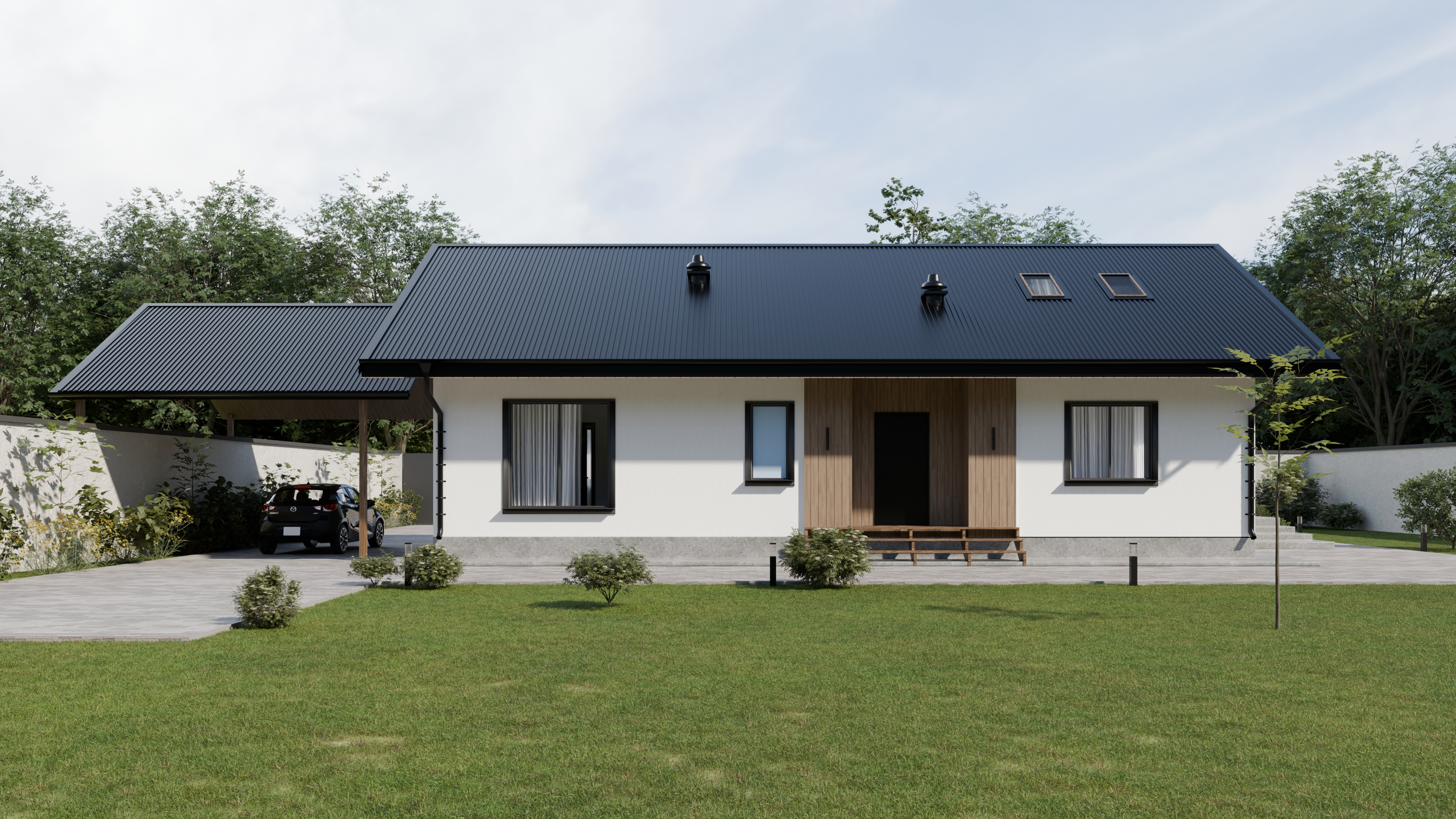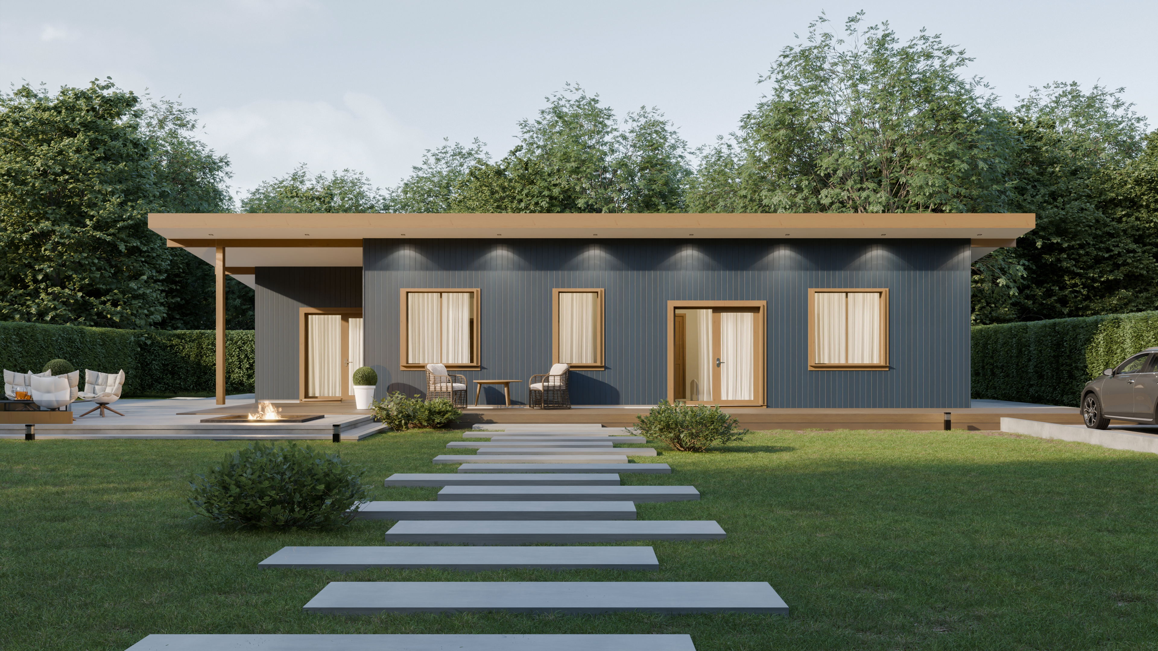 - Панорамные окна и входная дверь