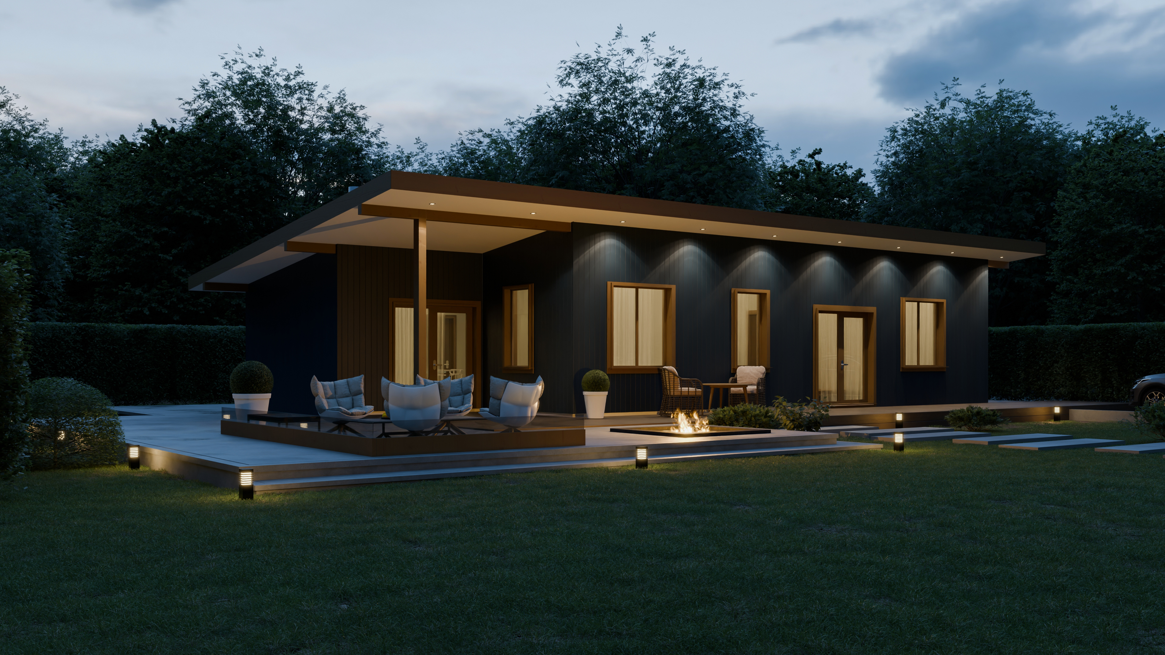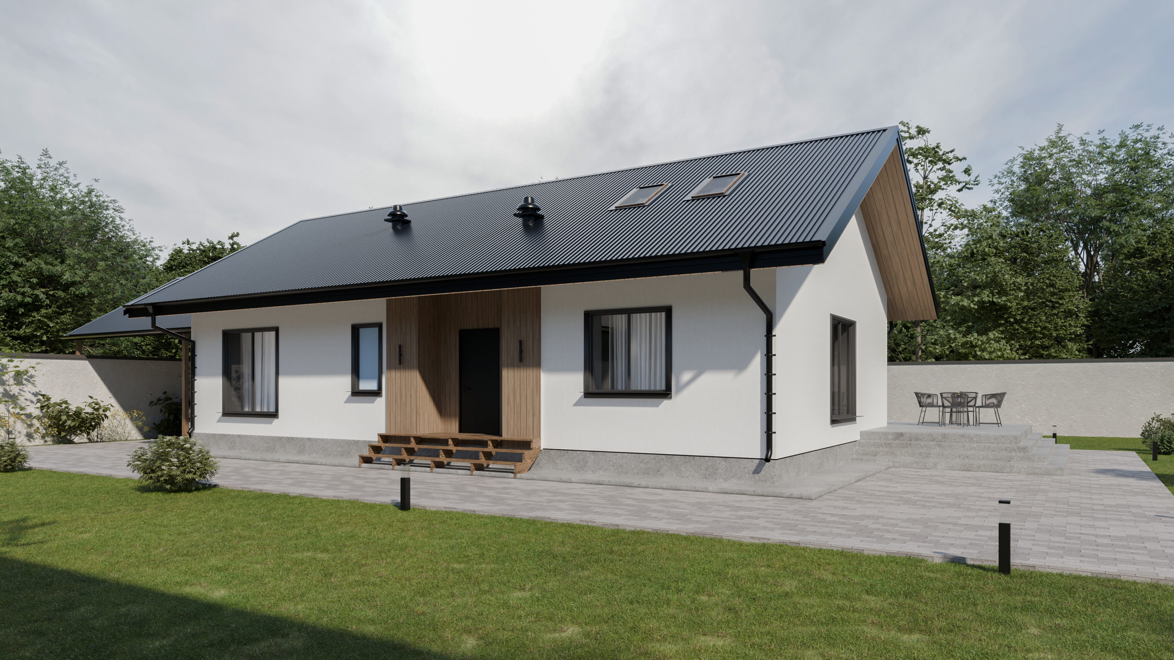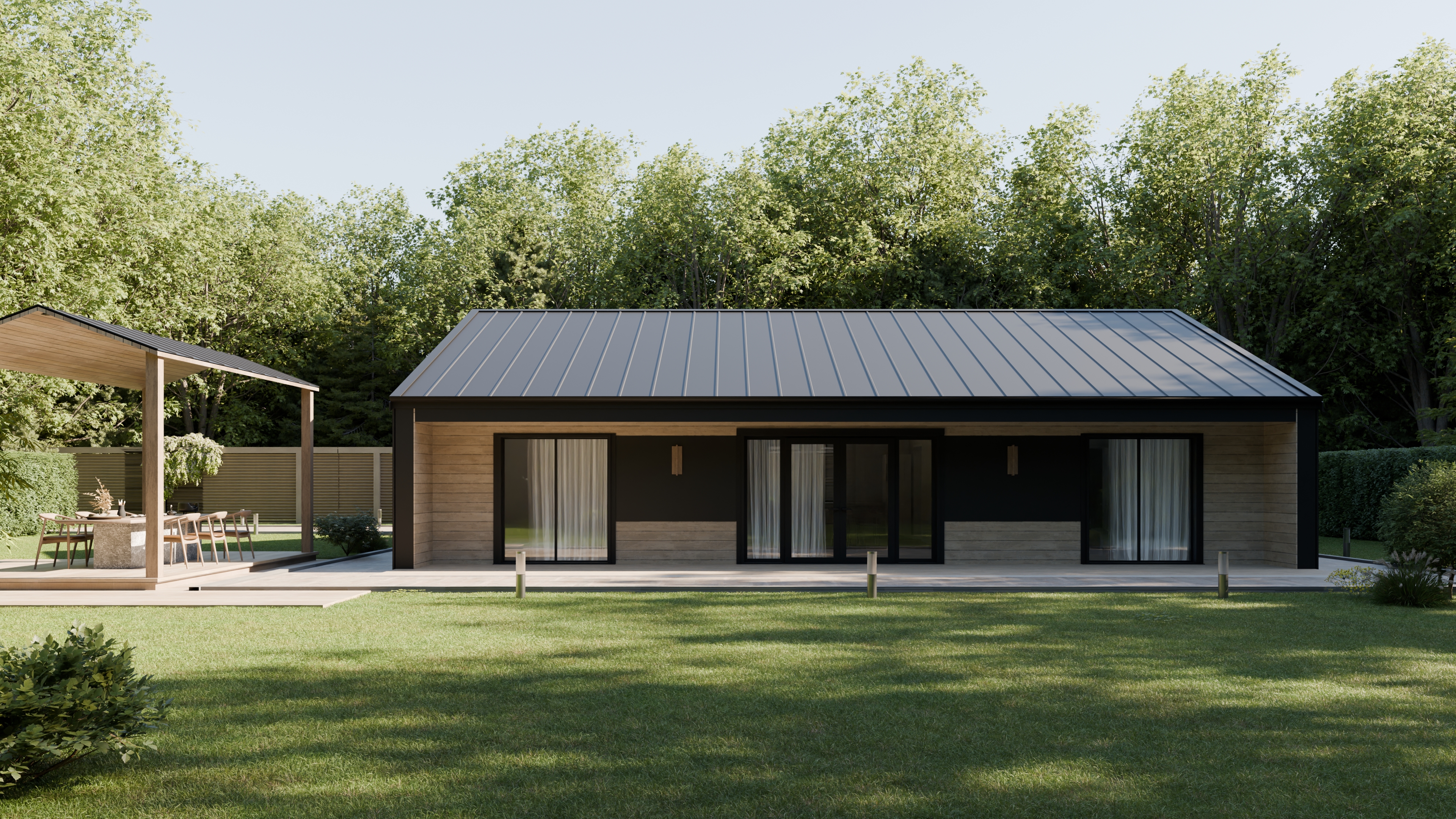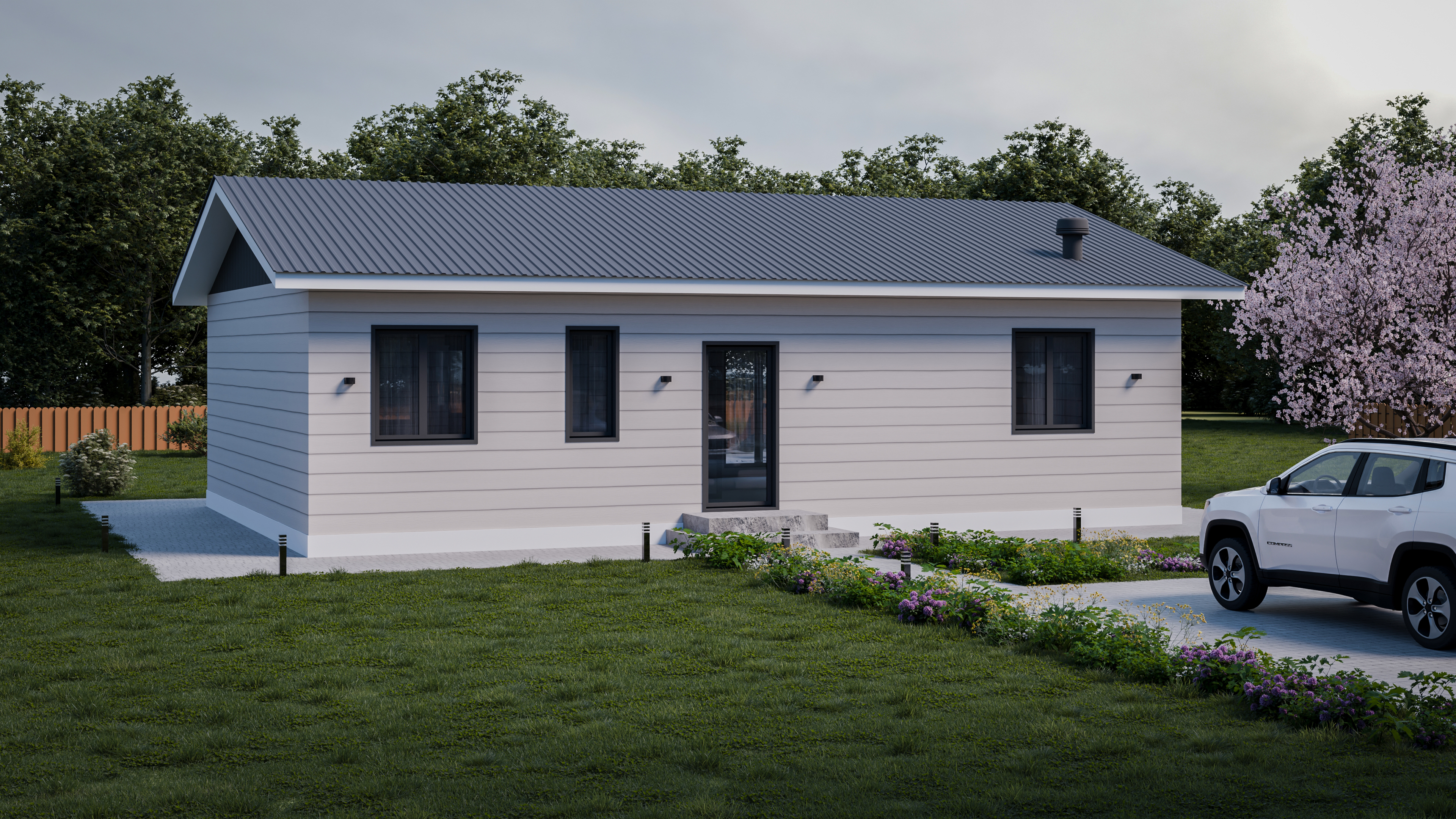 - Панорамные окна и входная дверь