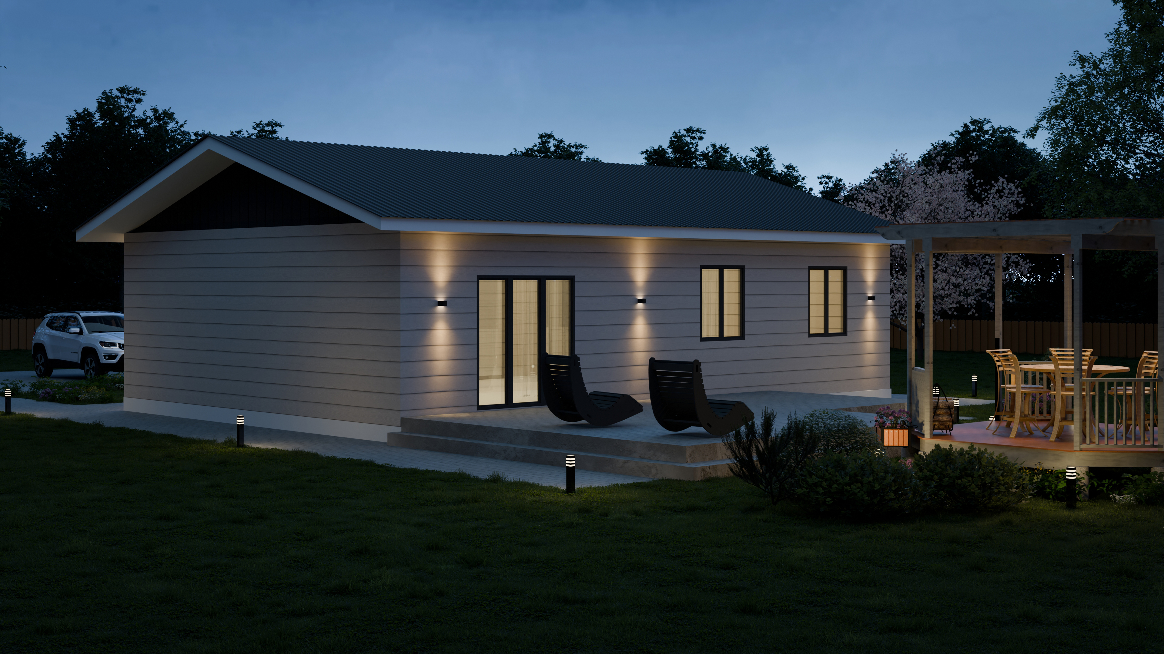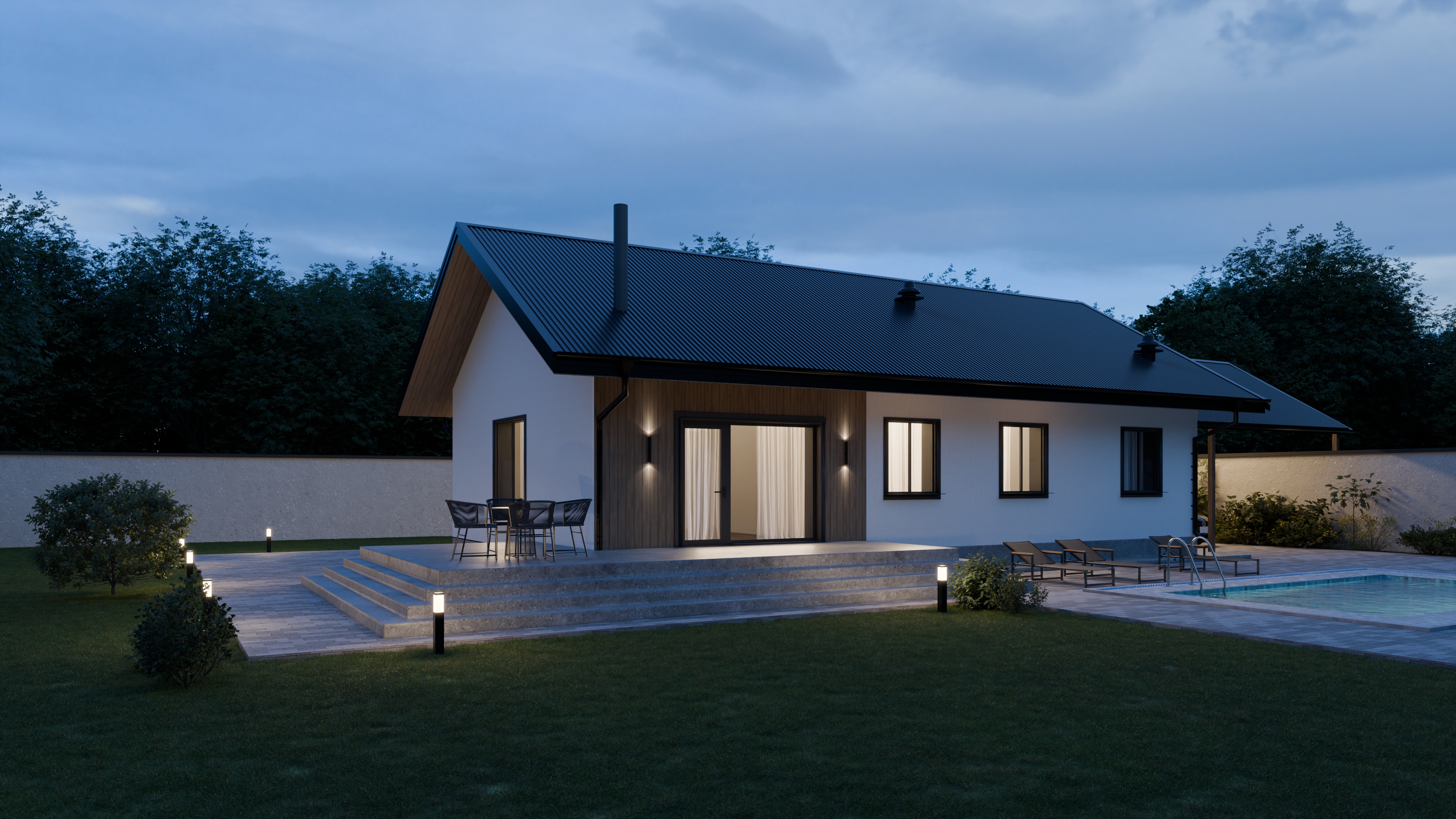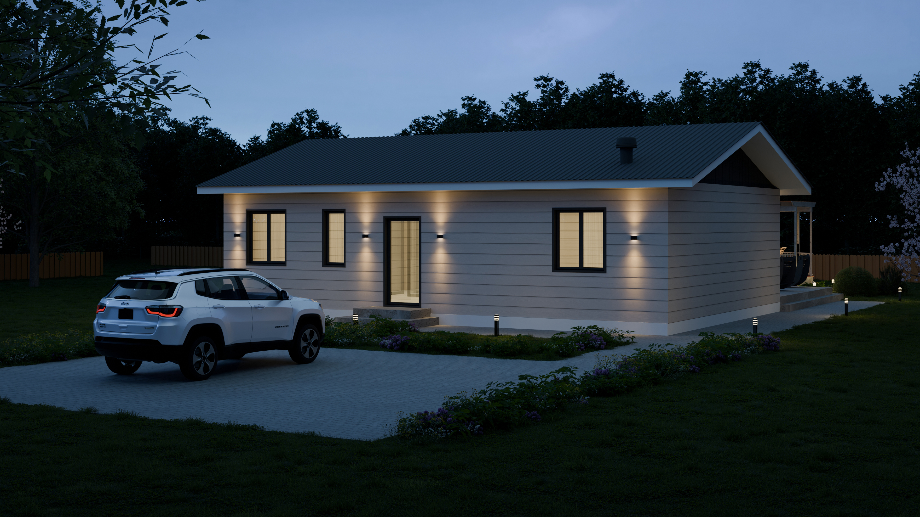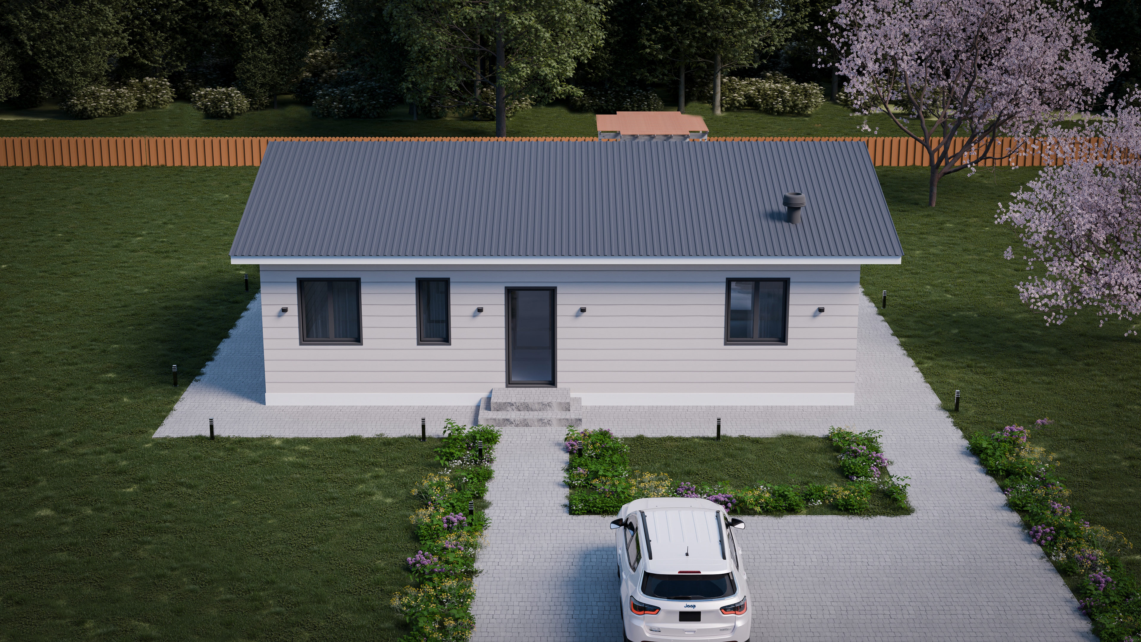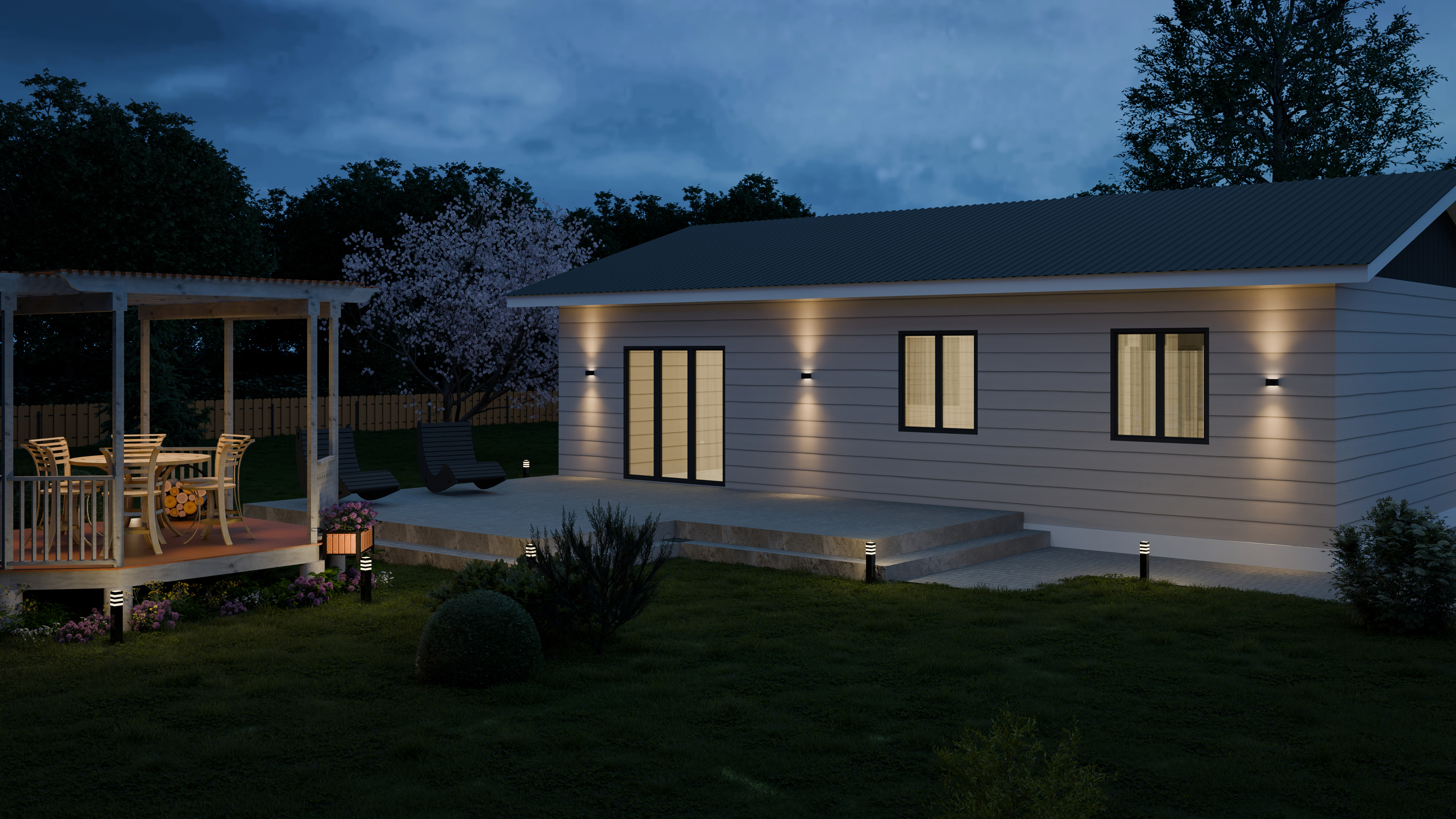 - Панорамные окна и входная дверь