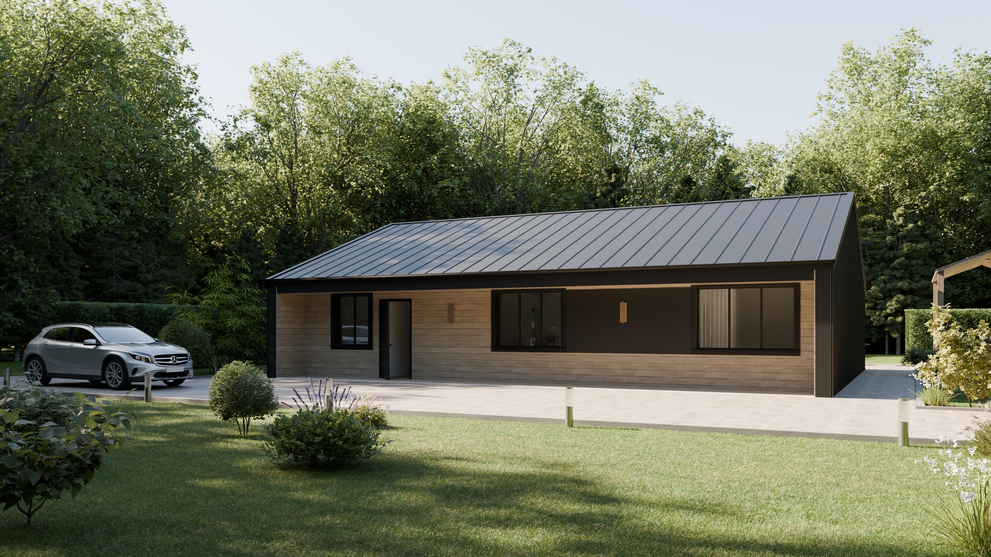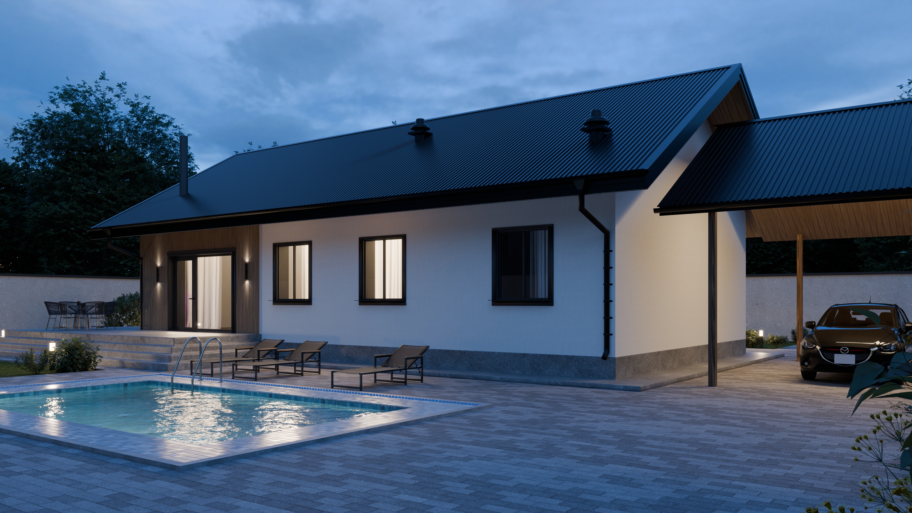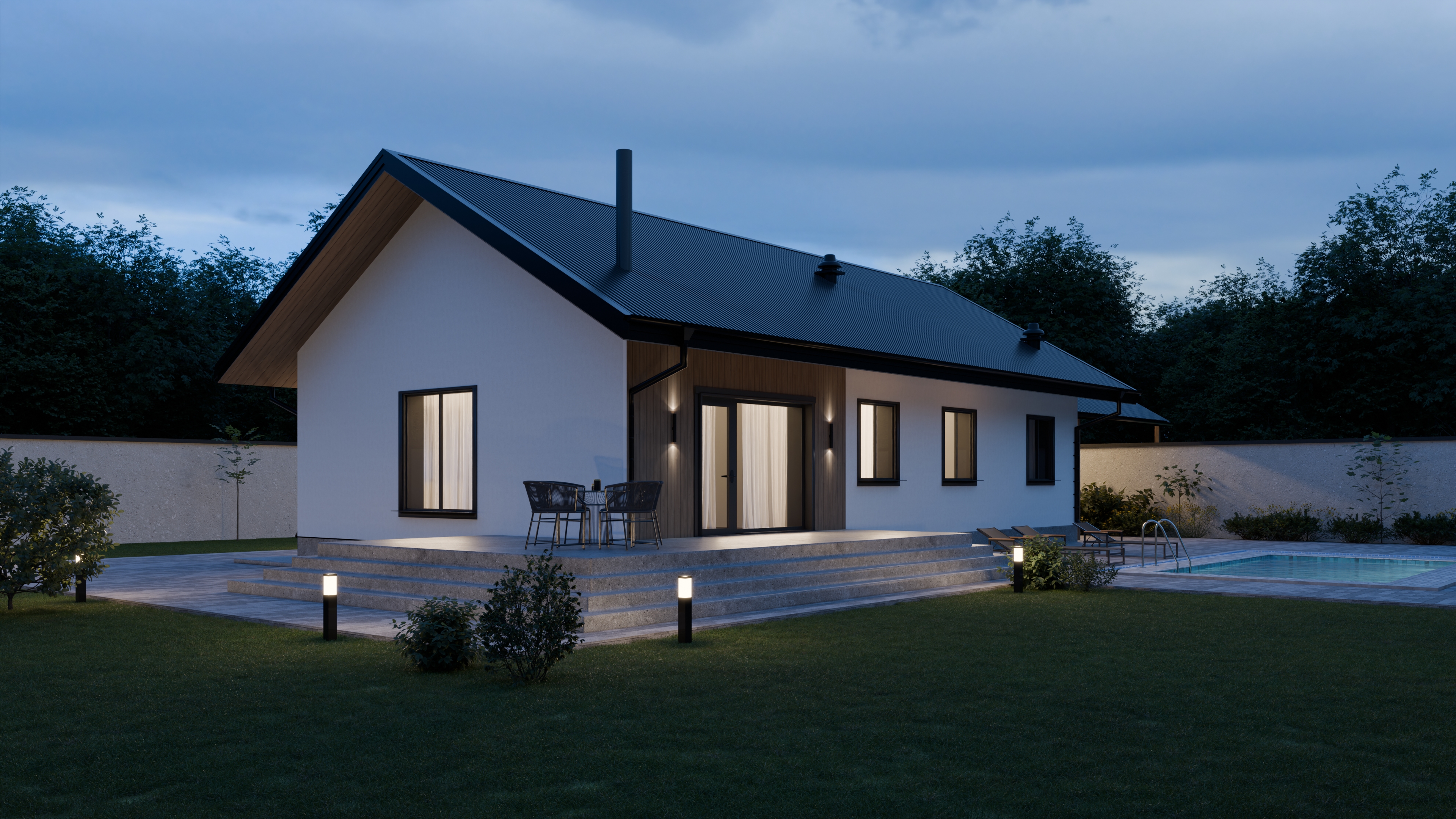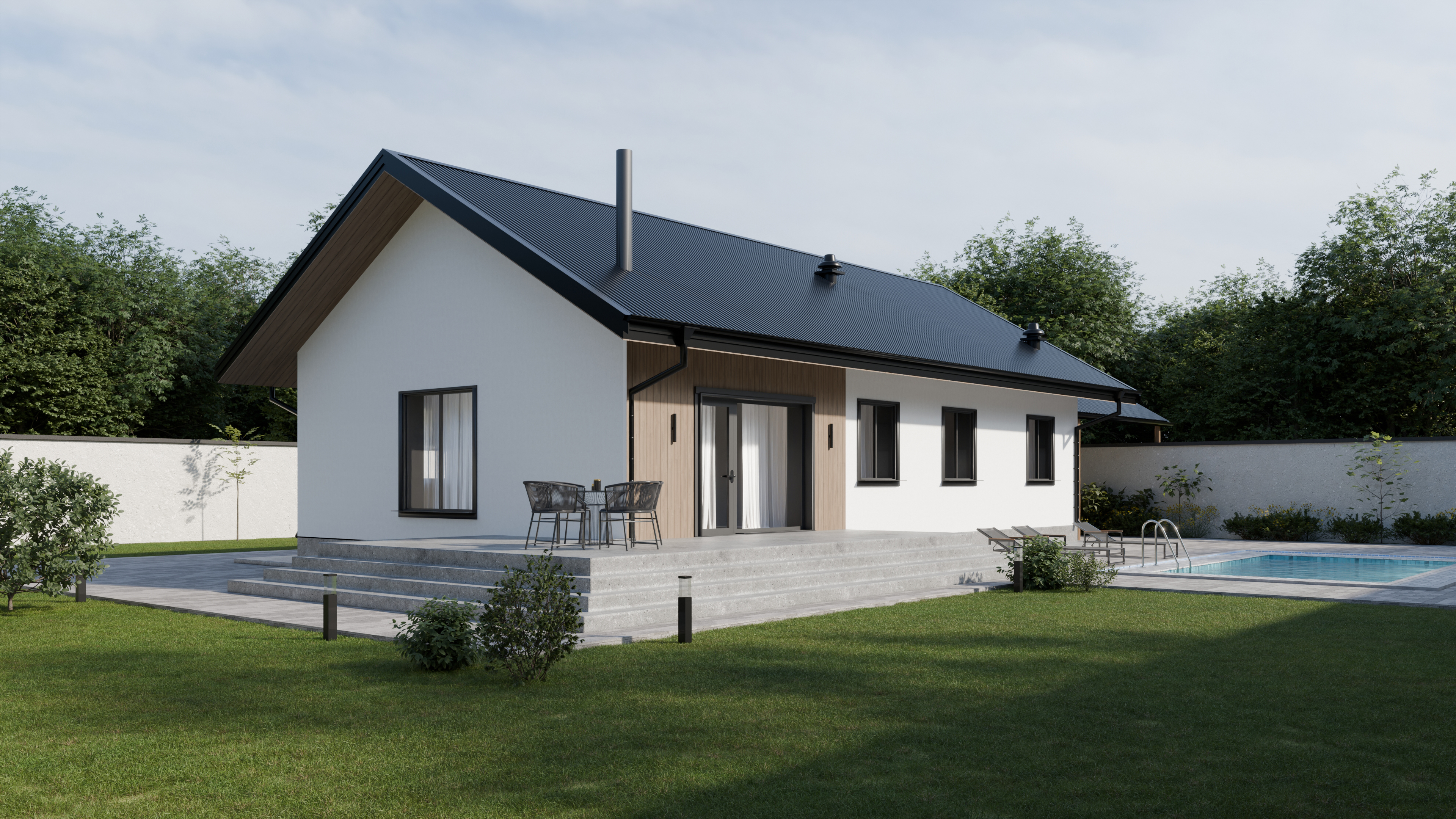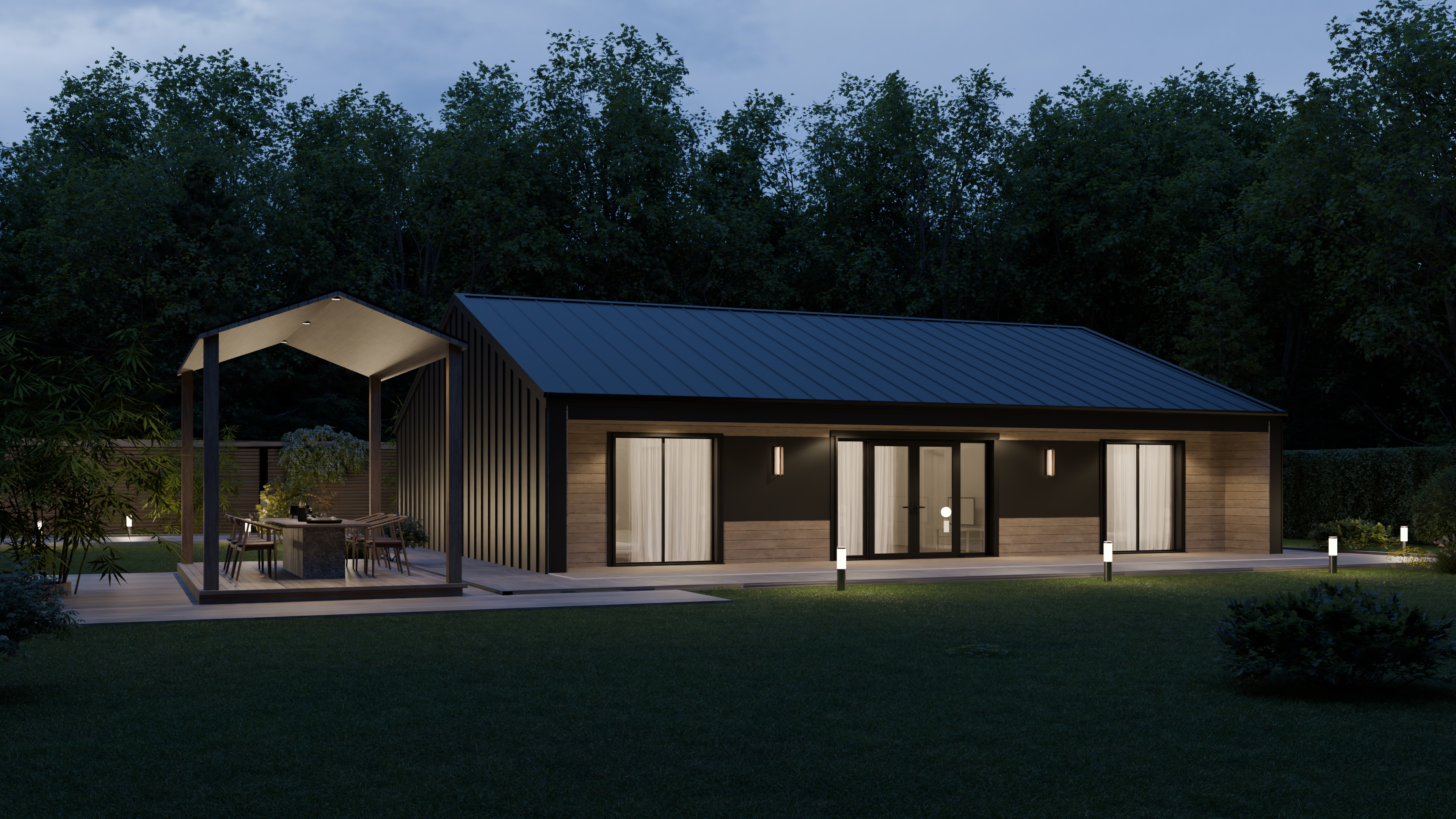 - Панорамные окна и входная дверь
