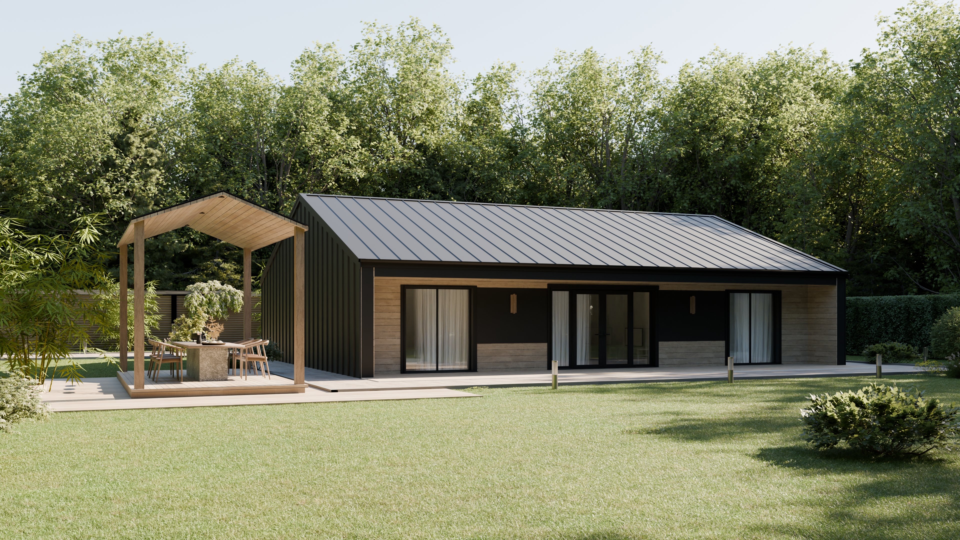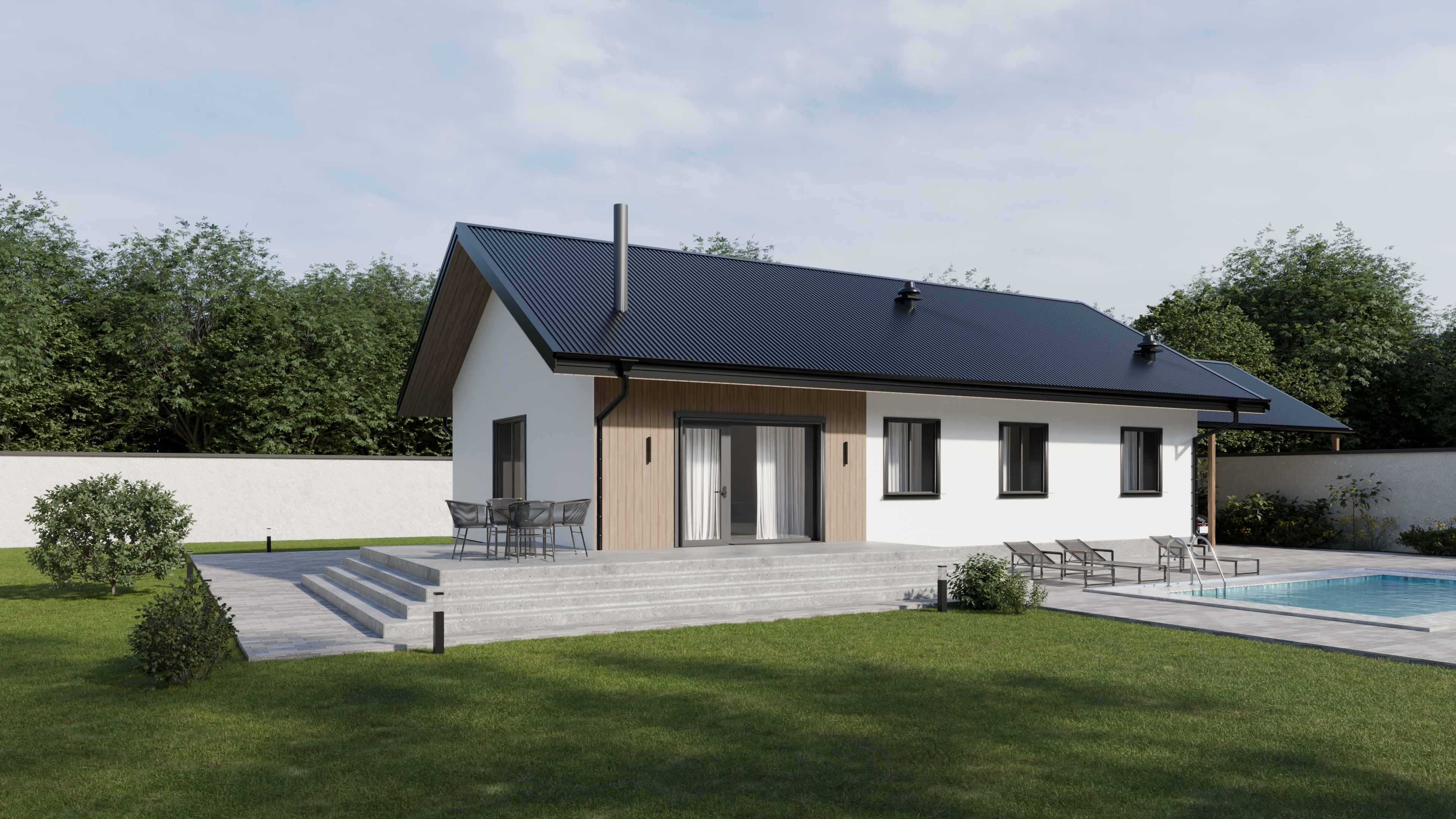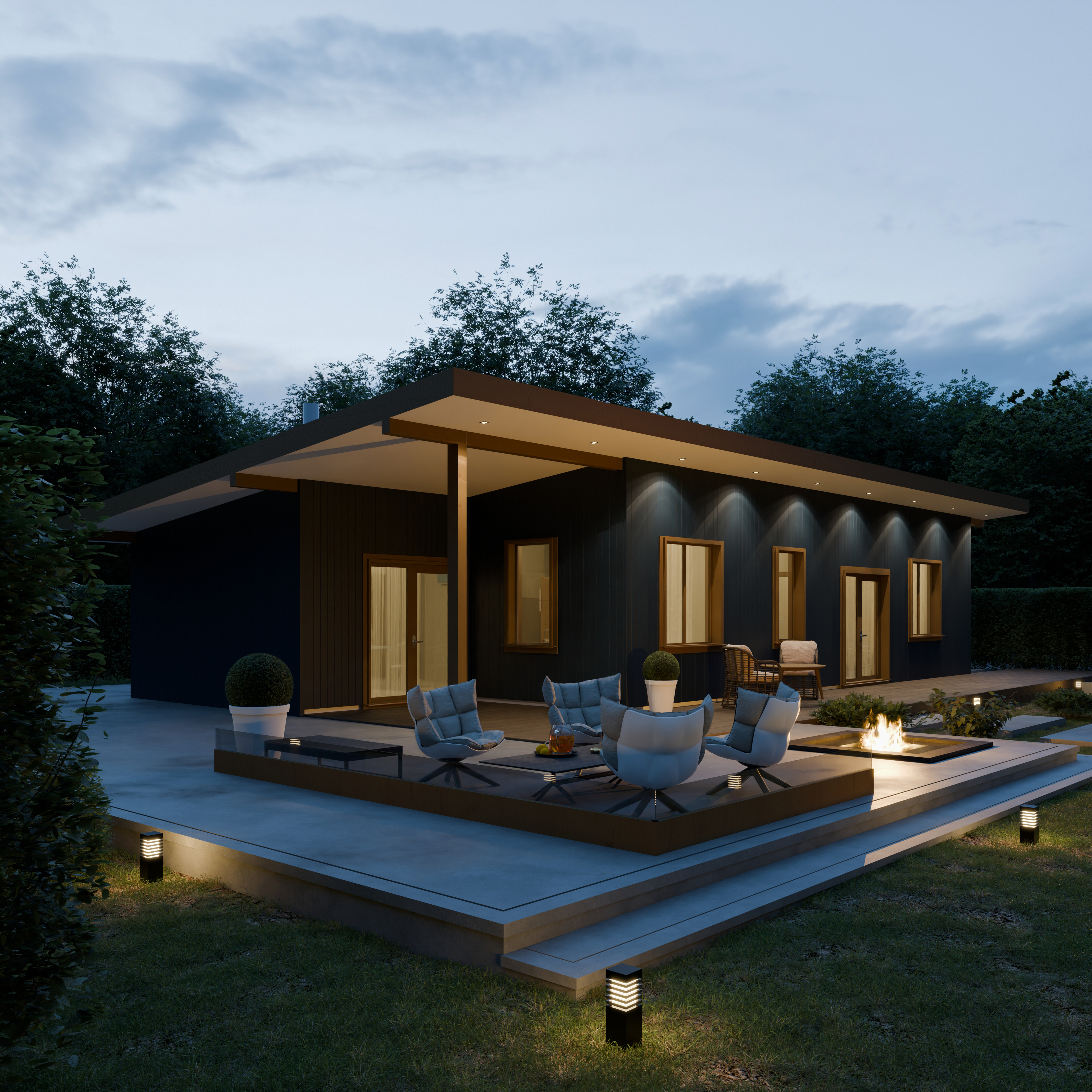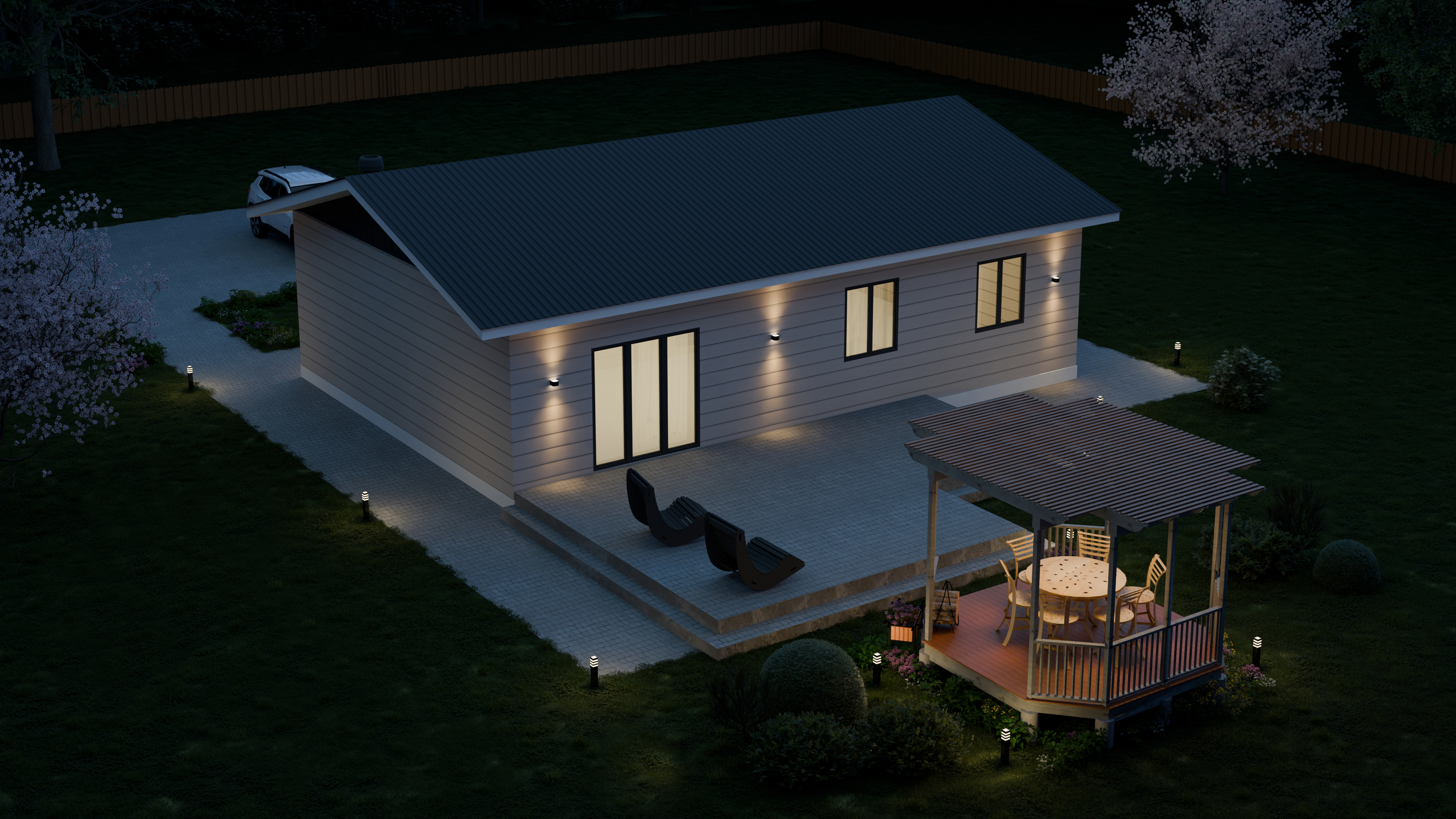 - Панорамные окна и входная дверь