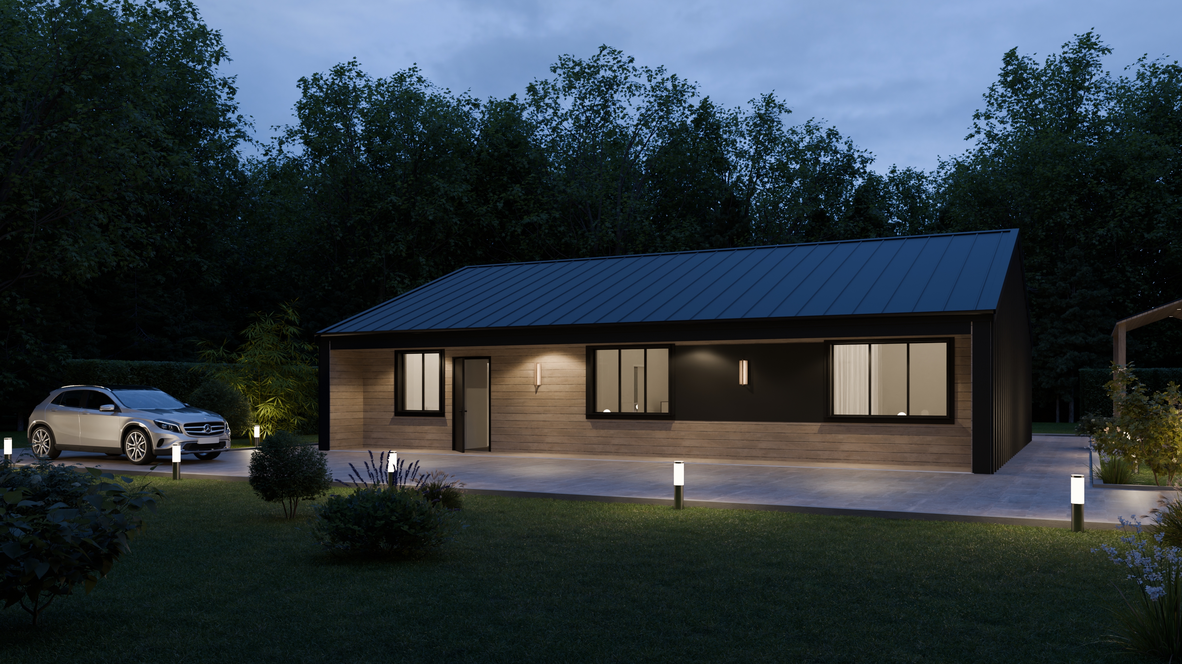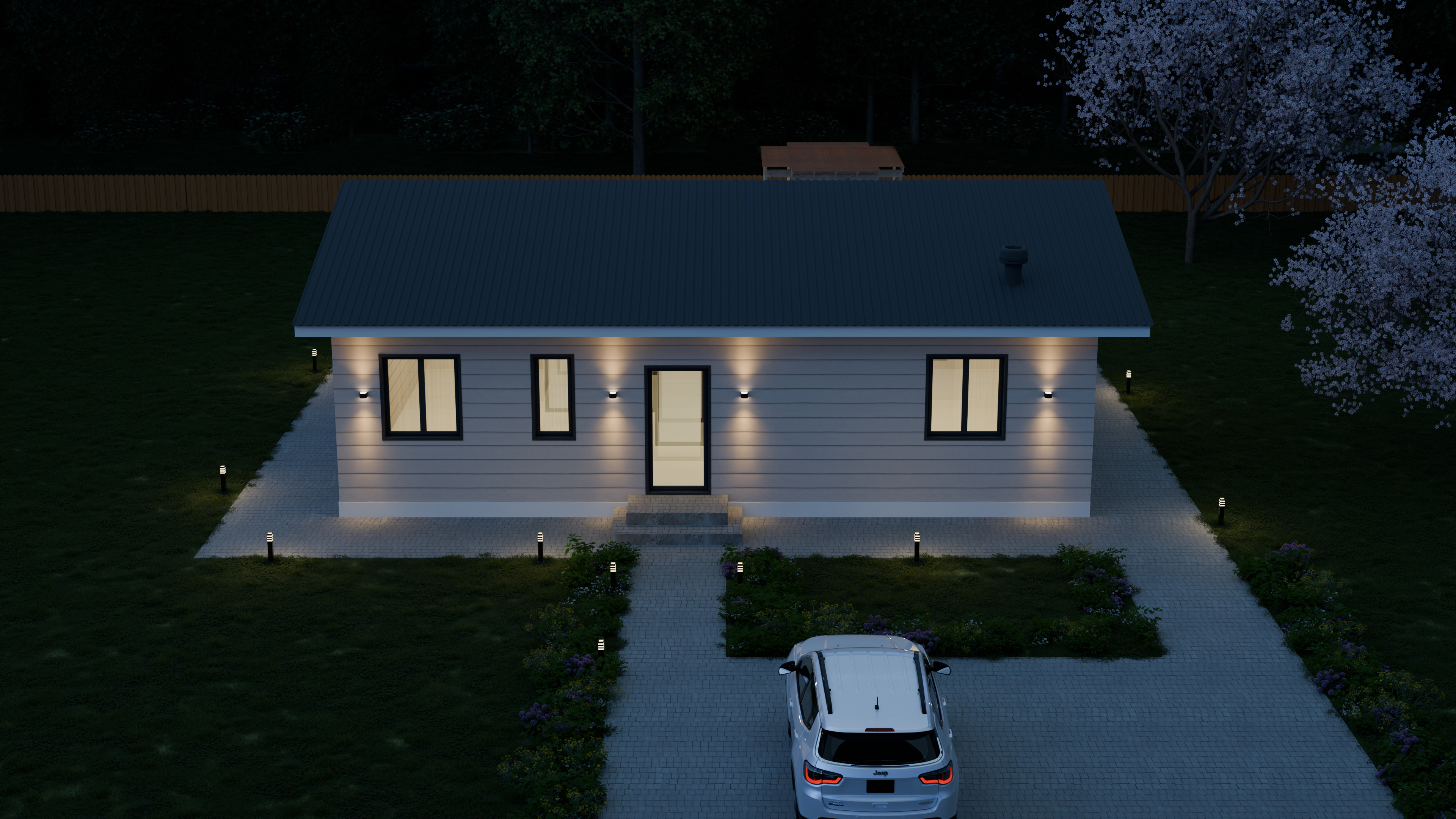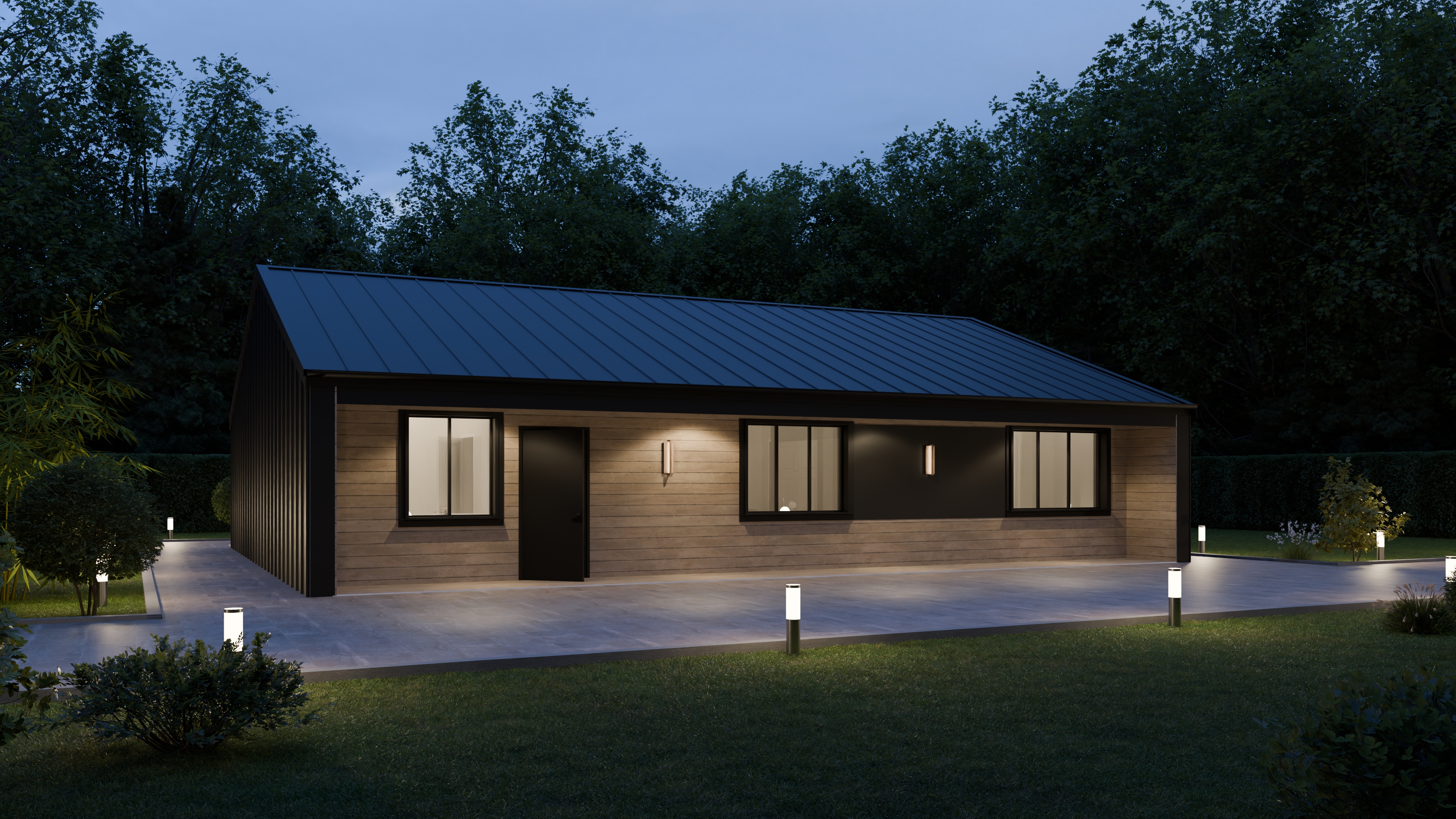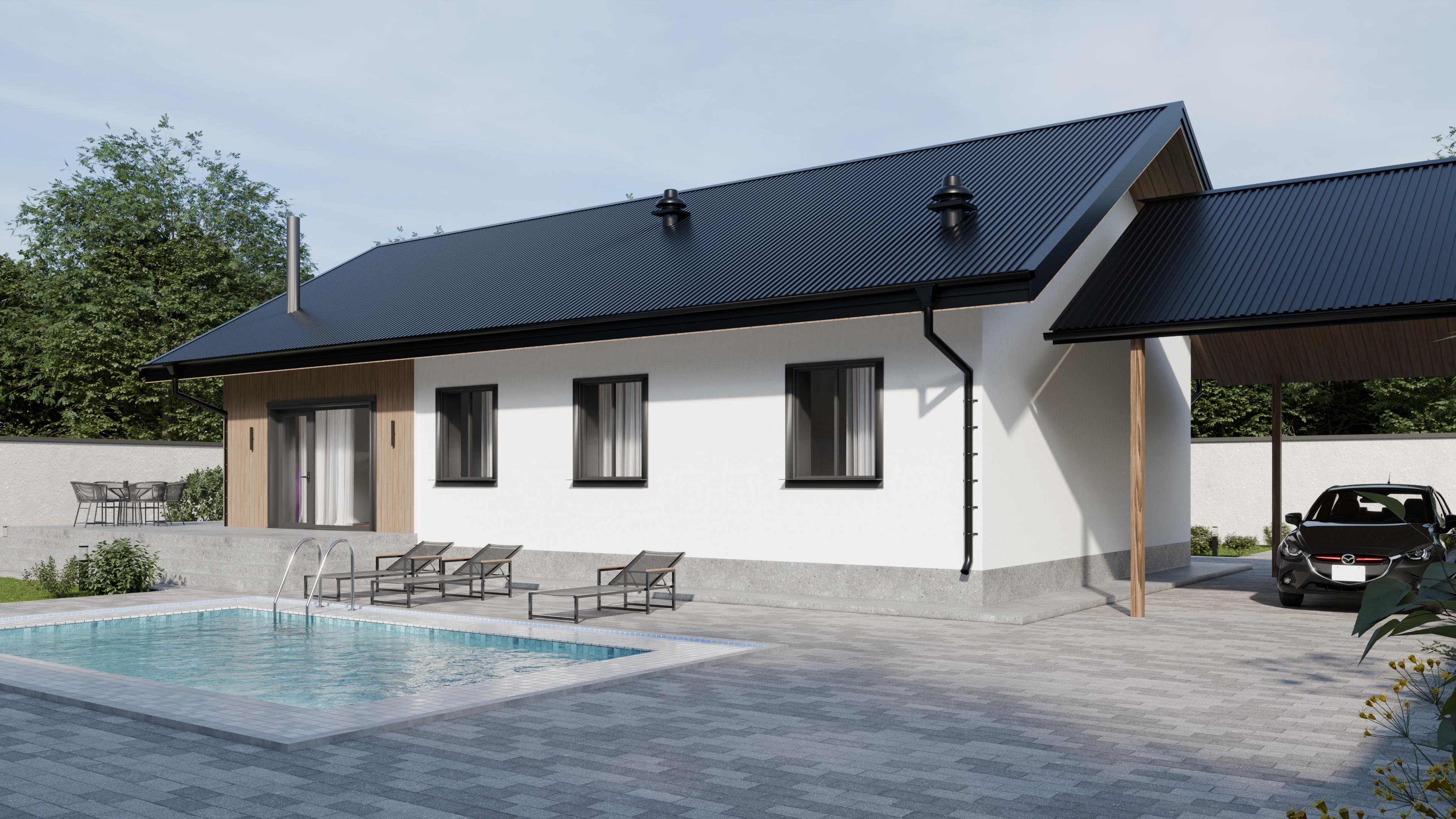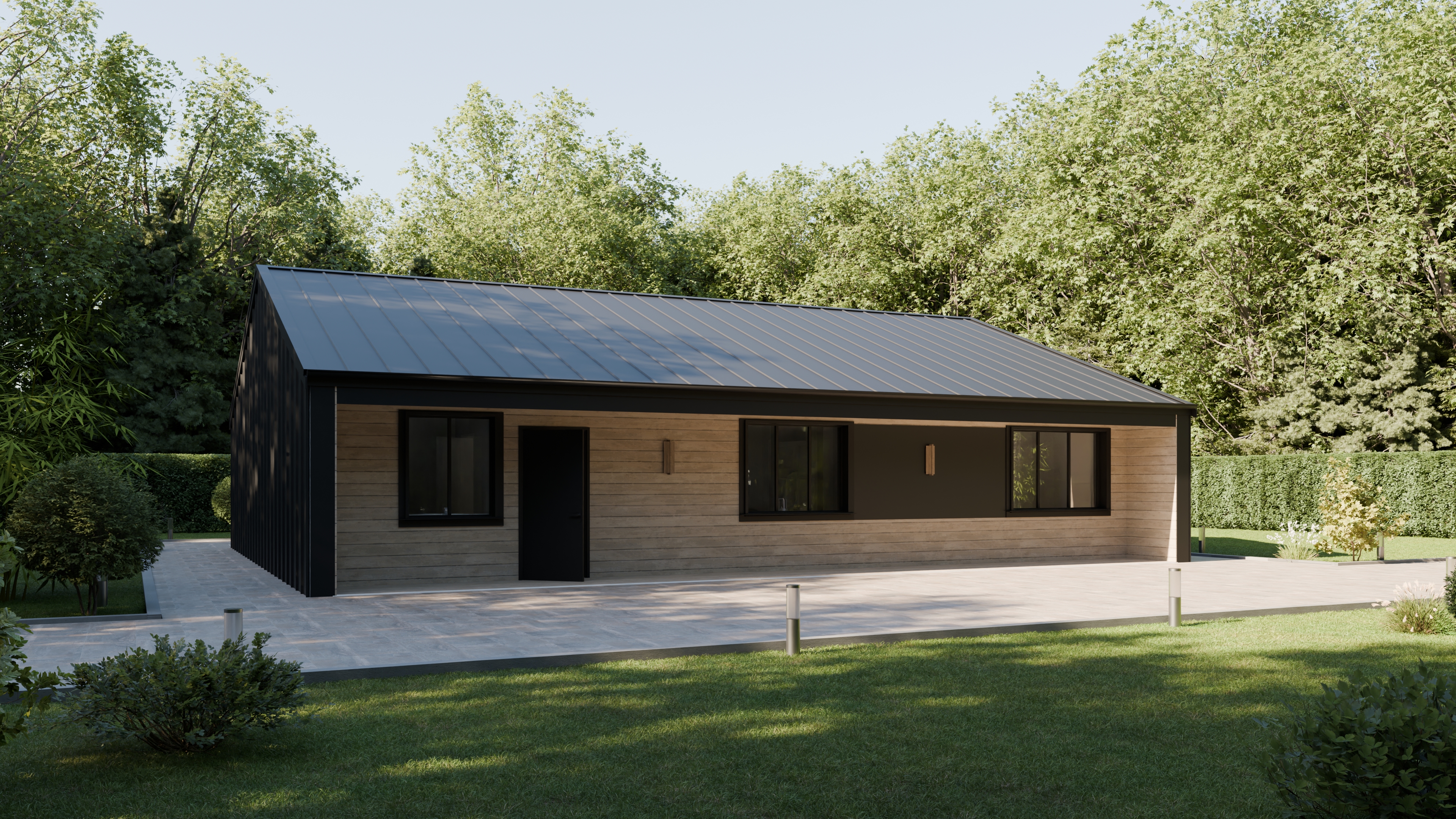 - Панорамные окна и входная дверь