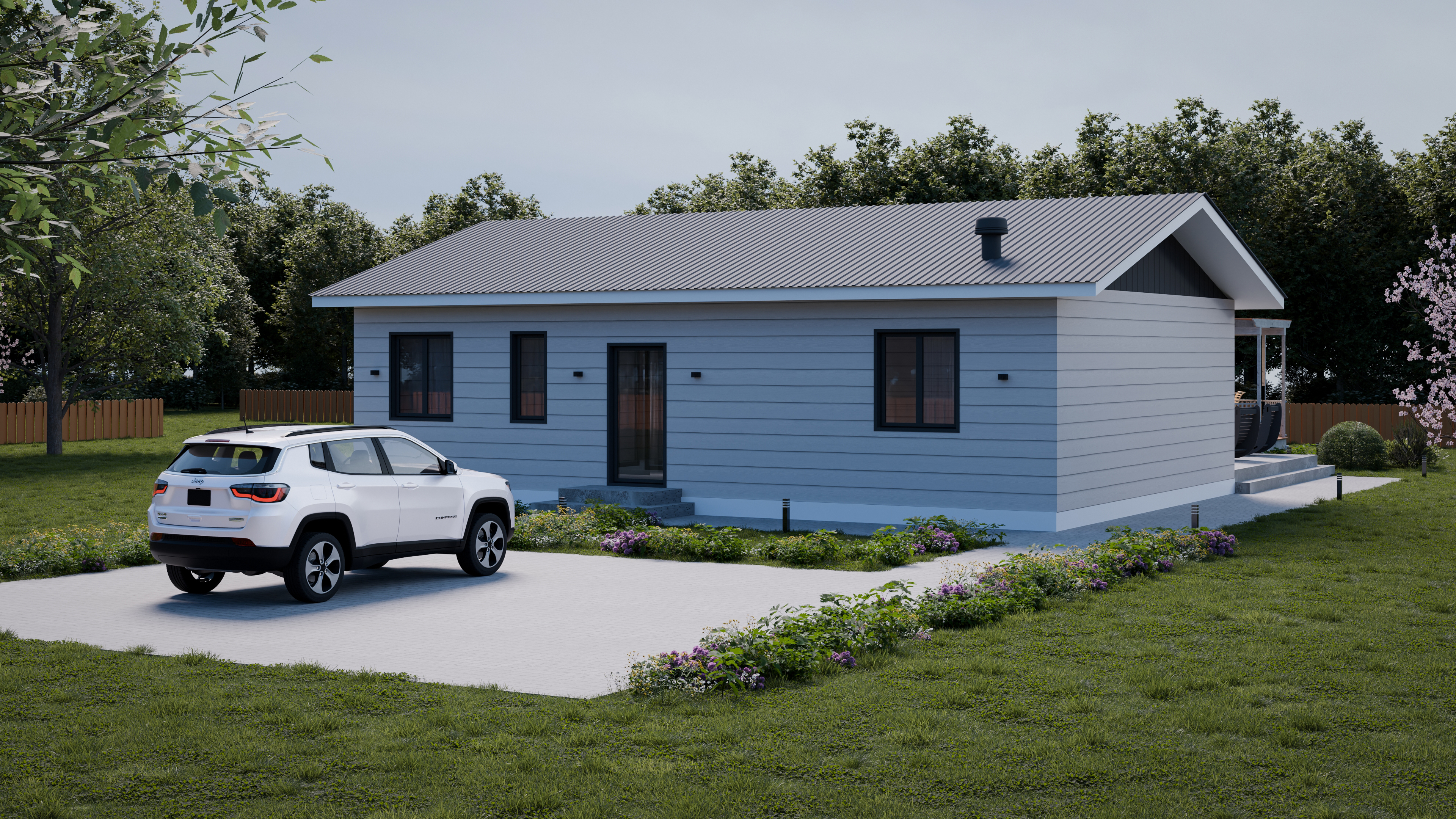 В доме: 4 спальни, 2 с/у, Кухня-гостиная
