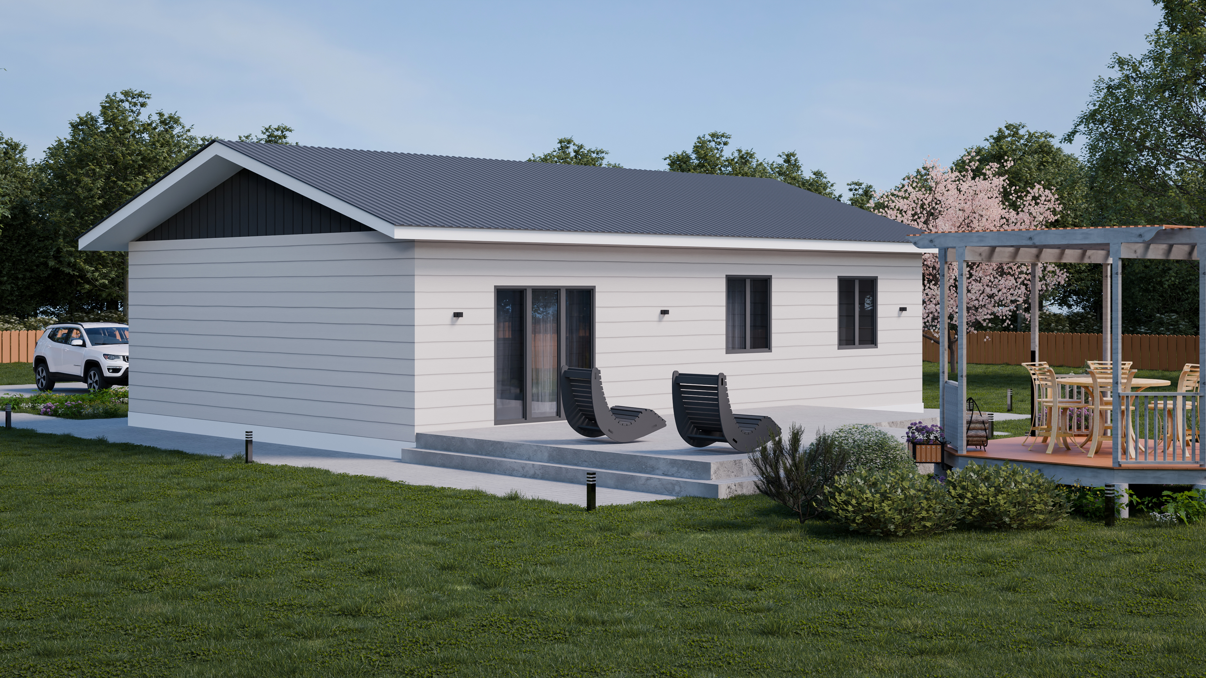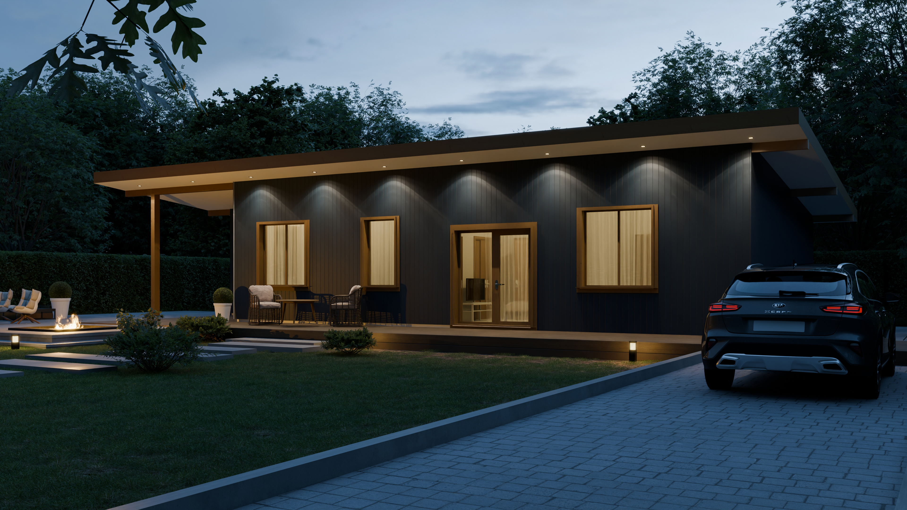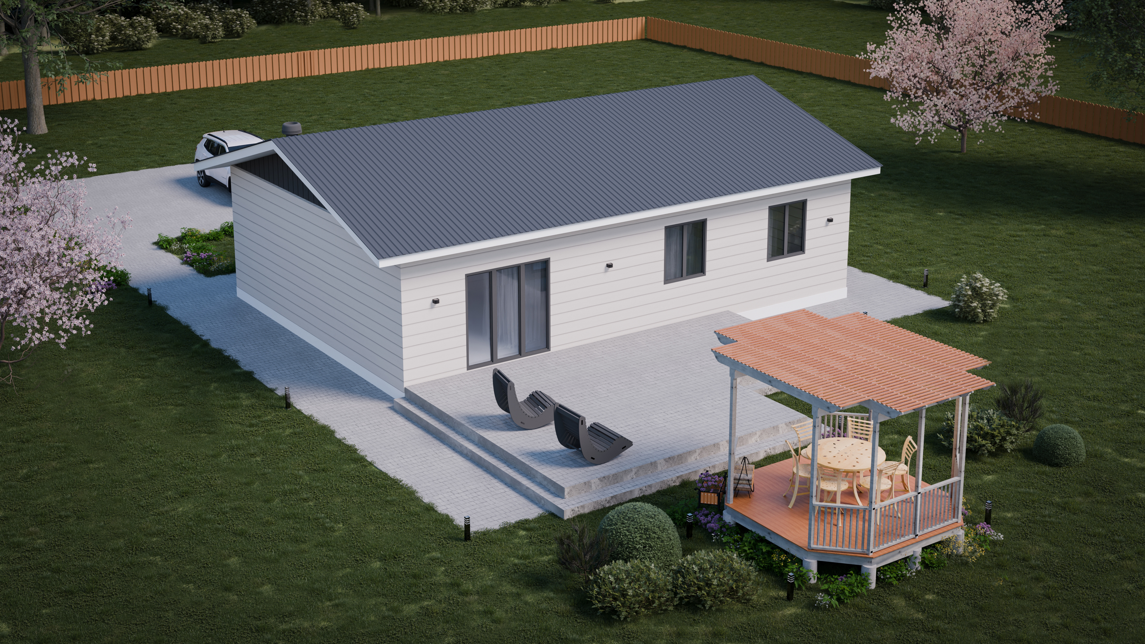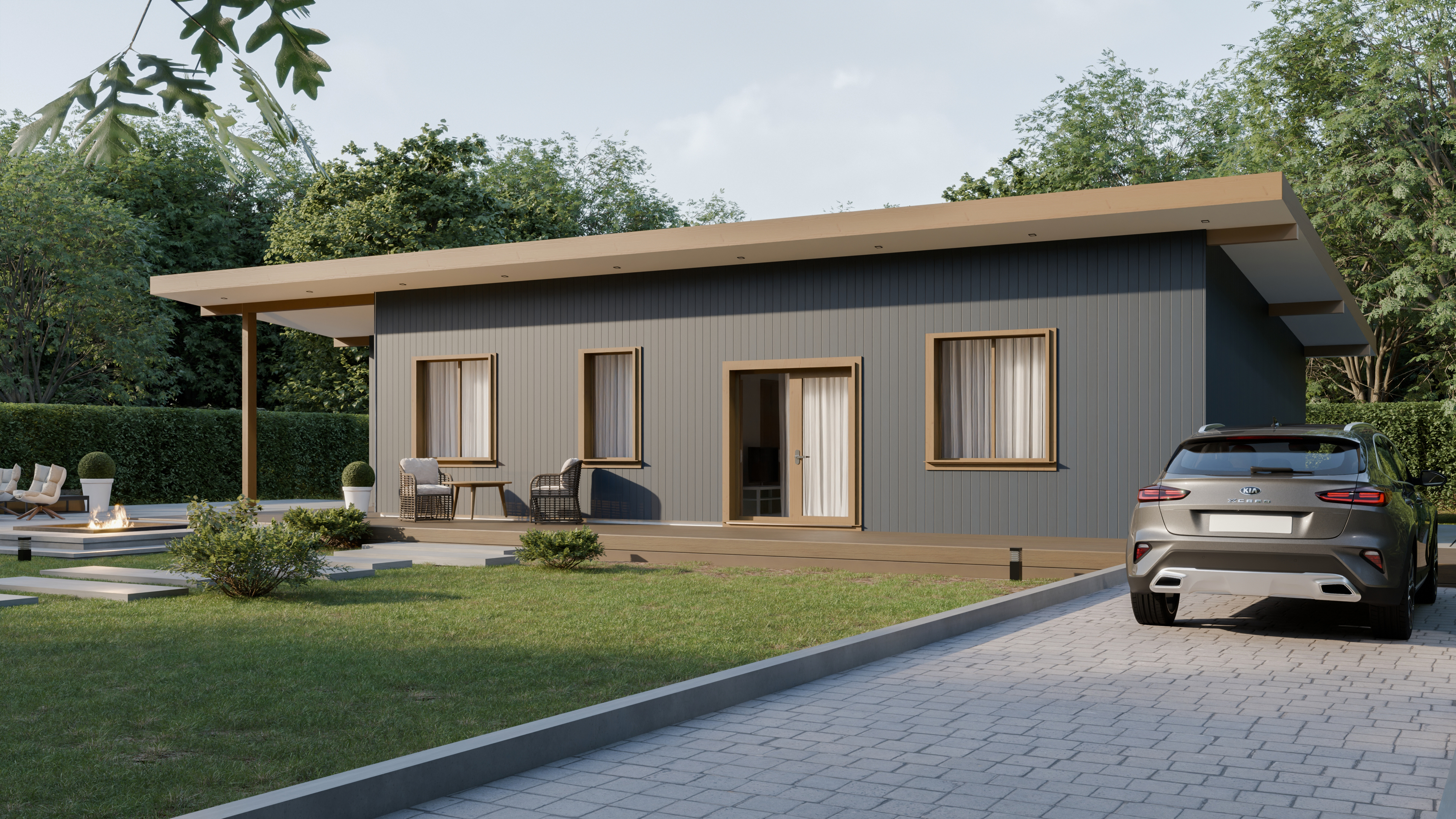 В доме: 2 спальни, 2 с/у, Кухня-гостиная