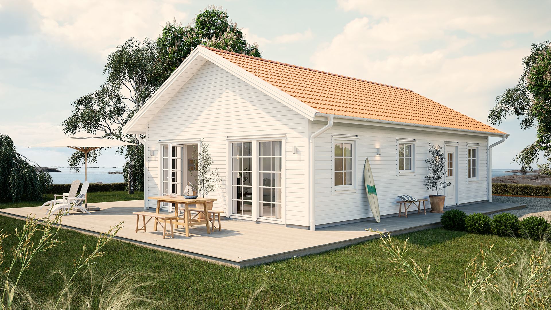 Компактный, но функциональный дом, где каждая зона используется эффективно. Кухня-гостиная объединяет семью, а спальни обеспечивают приватность.